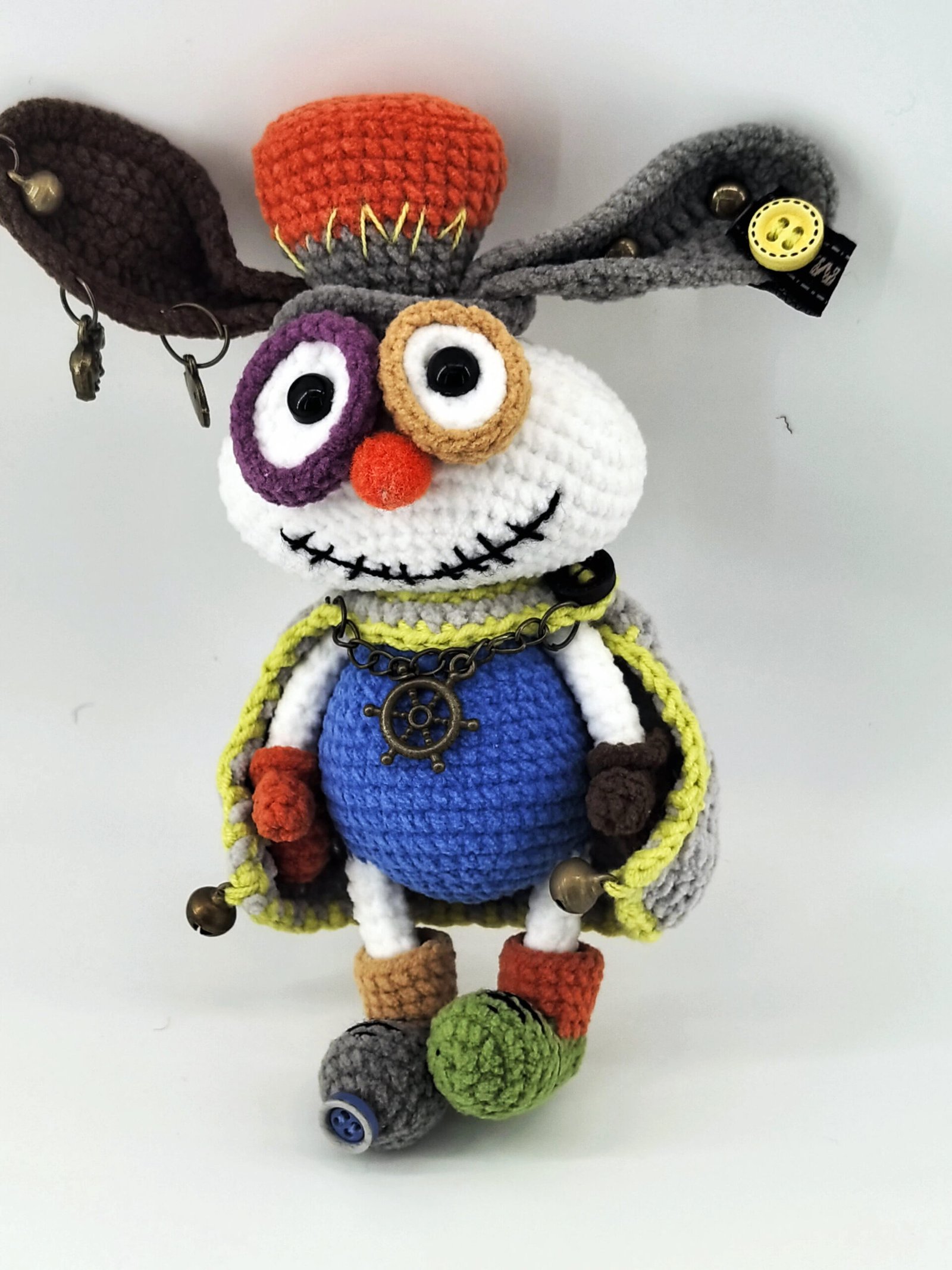 crochet special rabbit with a stylized cloak and decoration, handmade, all woven stitch by stitch. hang it on your bag and you will become a unique scenery.