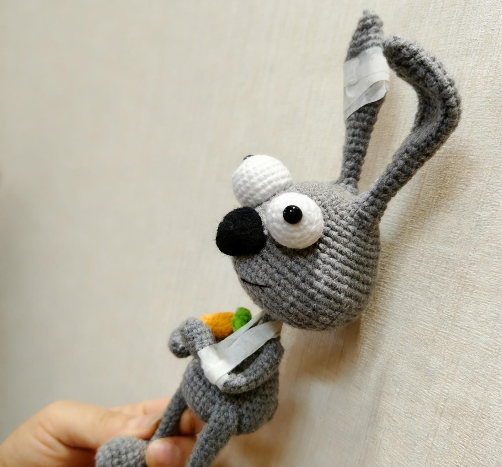 Gray Bunny Hand-Knitted Keychain; Unique 3D Bandaged Bunny Design; Soft Cotton Bag Charm; Cute Cartoon Hanging Ornament; Daily Use; Ideal Gift for Bunny Lovers, Her & Kids; Lightweight & Durable; Perfect for Keys, Bags & Backpacks