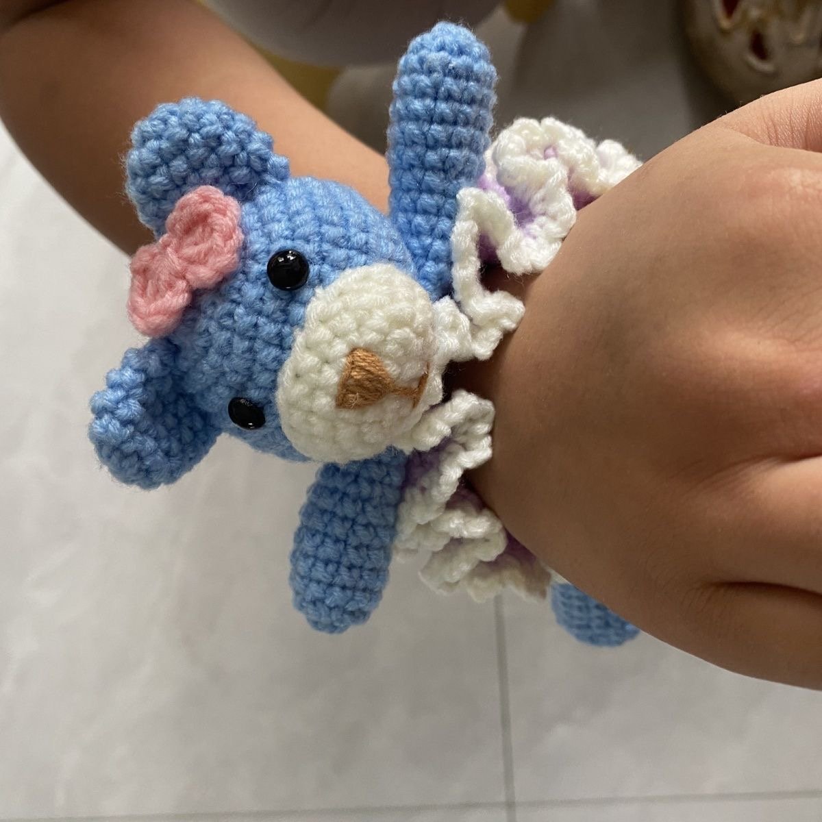 【UNIQUE CROCHET HAIR ACCESSORY】Our hand-crochet blue bear hair scrunchie is meticulously crafted by hand, each piece brimming with the artisan’s care and warmth. This adorable design features a fluffy blue bear head with a pink bow, white facial patch, brown nose, and black safety eyes, paired with a ruffled scrunchie base in blue, purple, and white—creating a one-of-a-kind hair accessory that feels like a cute plush companion for your hairstyle. No two scrunchies are identical, making yours a unique keepsake that stands out in any hair accessory collection. It’s not just a hair tie; it’s a sweet, playful detail that adds charm to every look, creating lasting moments of joy and cuteness.