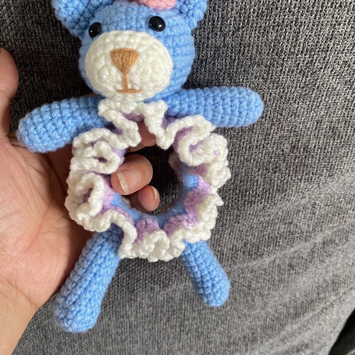 【MEANINGFUL GIFT】This hand-crochet blue bear scrunchie makes a heartfelt gift for birthdays, baby showers, or any special occasion. It’s a thoughtful way to celebrate cuteness and creativity, offering a unique, handmade treasure that blends plush charm with practical functionality. Whether as a treat for yourself or a sweet surprise for a loved one, it’s sure to become a beloved item that brings joy and cuteness to every hairstyle.
