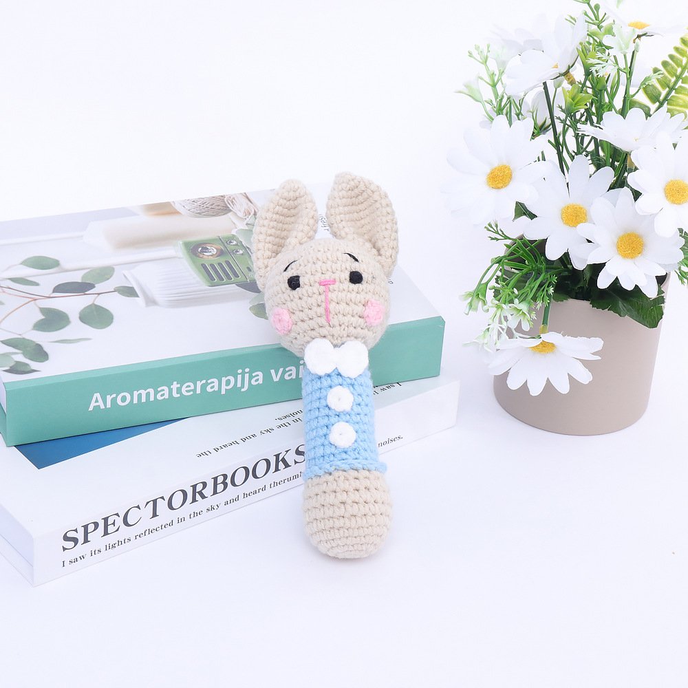 【SOFT & SAFE MATERIALS】Made from premium skin-friendly cotton yarn, this crochet blue bunny handle rattle is incredibly soft, safe, and gentle for tiny hands and mouths. The breathable, non-toxic material is kind to sensitive skin, free from harsh chemicals or odors, ensuring your baby can grasp, squeeze, and play with confidence. The sturdy hand-crochet stitching ensures durability, so this beloved rattle can withstand years of teething and exploration.