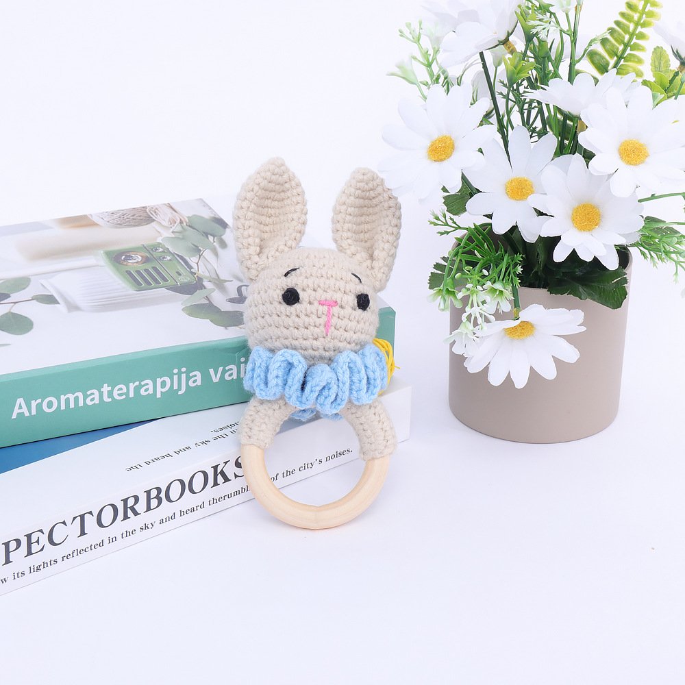 【COMFORT & SENSORY PLAY】With its cozy texture, this bunny teething ring is perfect for sensory development, fine motor skill building, and soothing fussy babies. The smooth wooden ring is easy for little hands to hold and provides a firm surface for teething relief, while the soft crochet bunny and blue ruffled collar offer tactile comfort and visual stimulation. It’s more than a toy—it’s a source of calm and comfort that becomes a cherished part of your baby’s early routine.