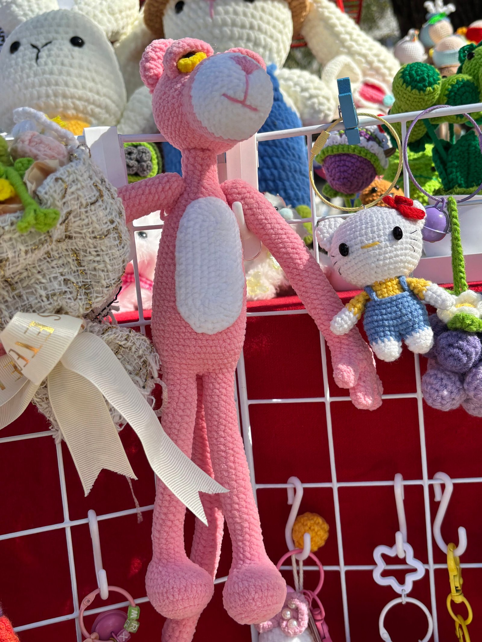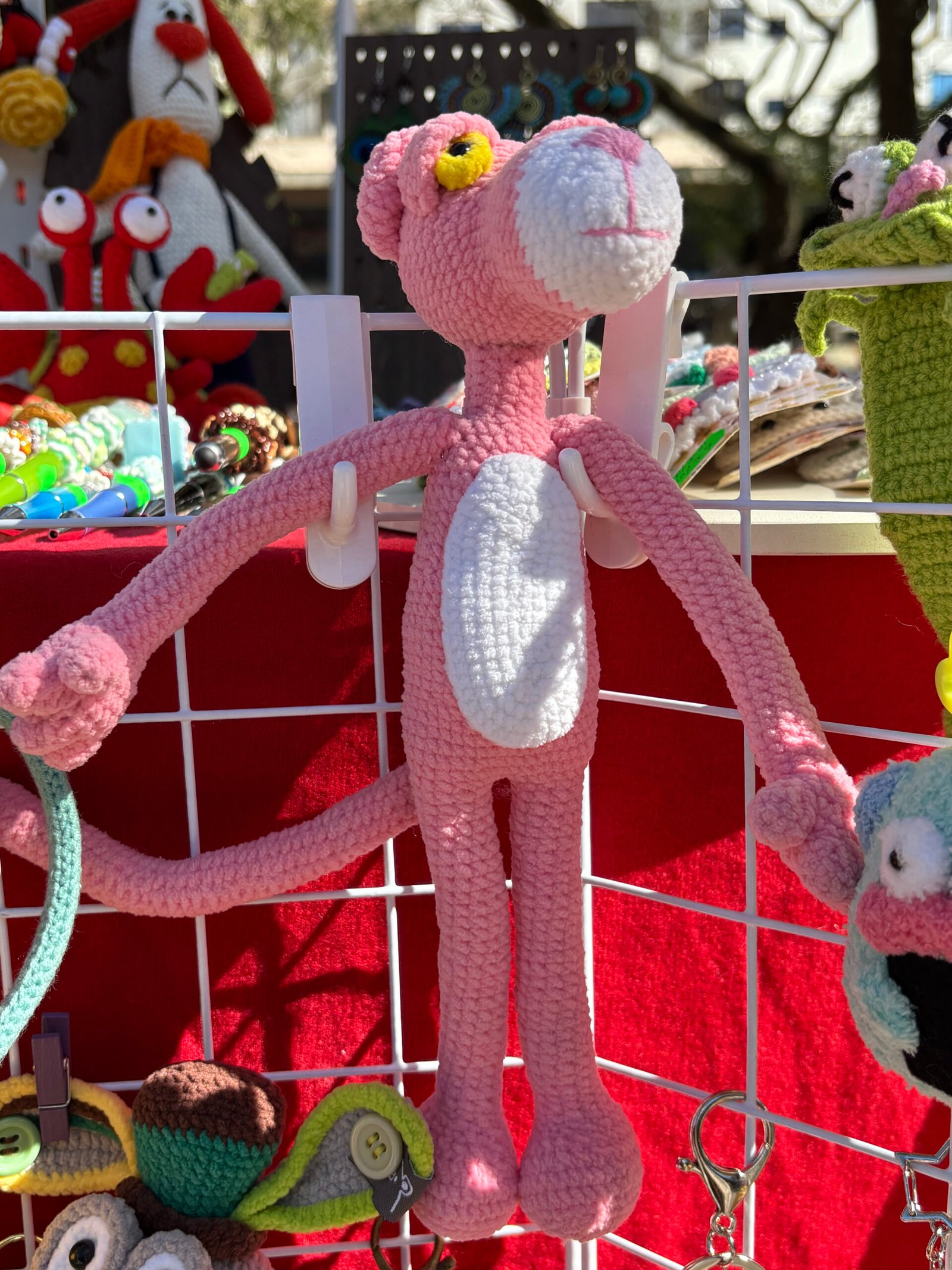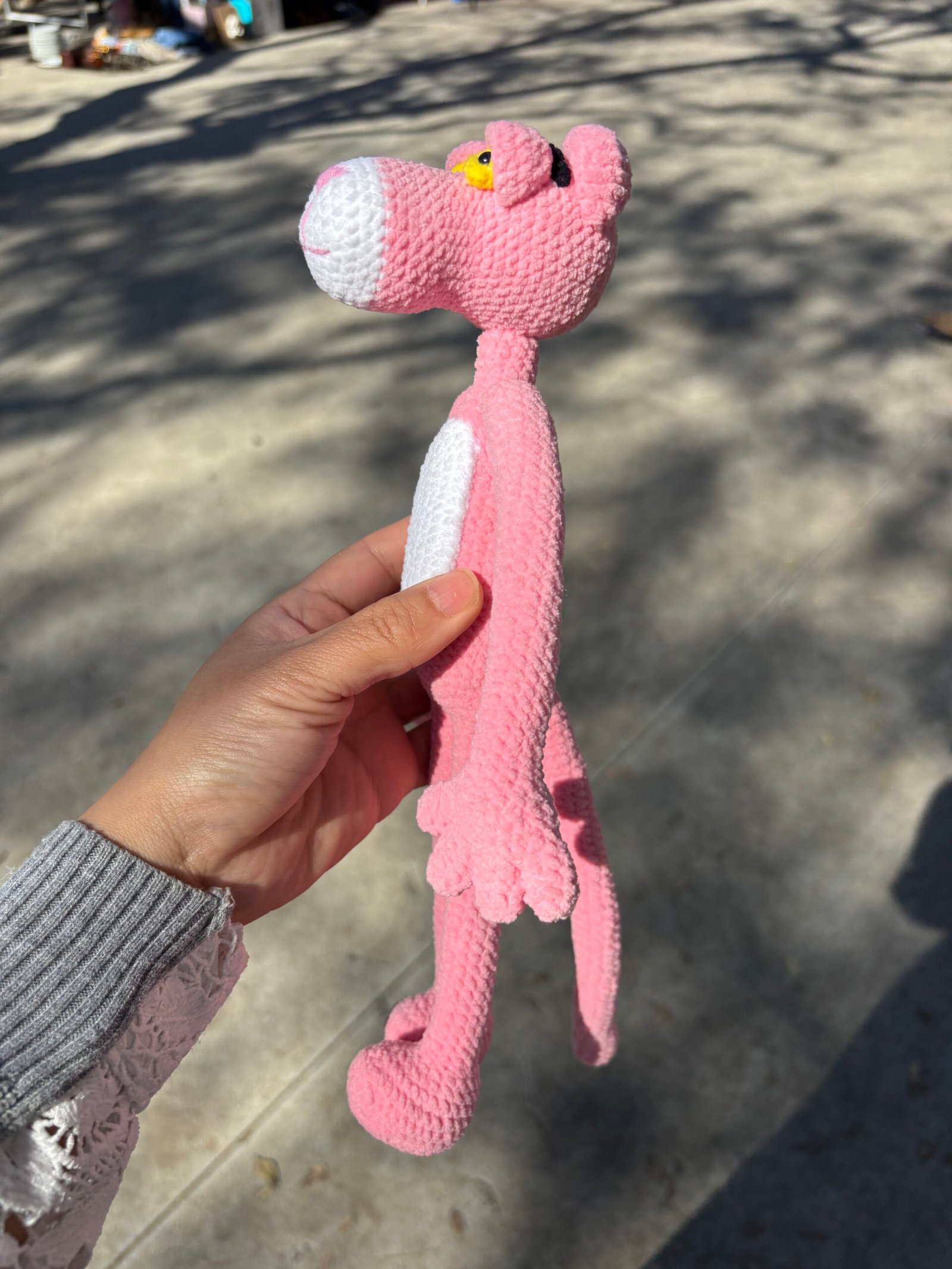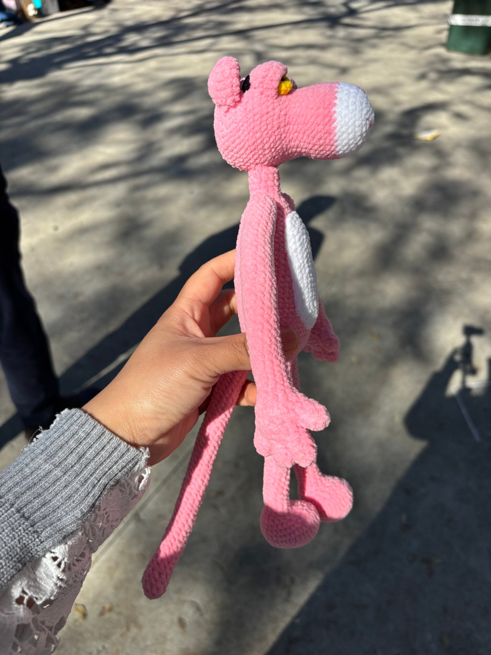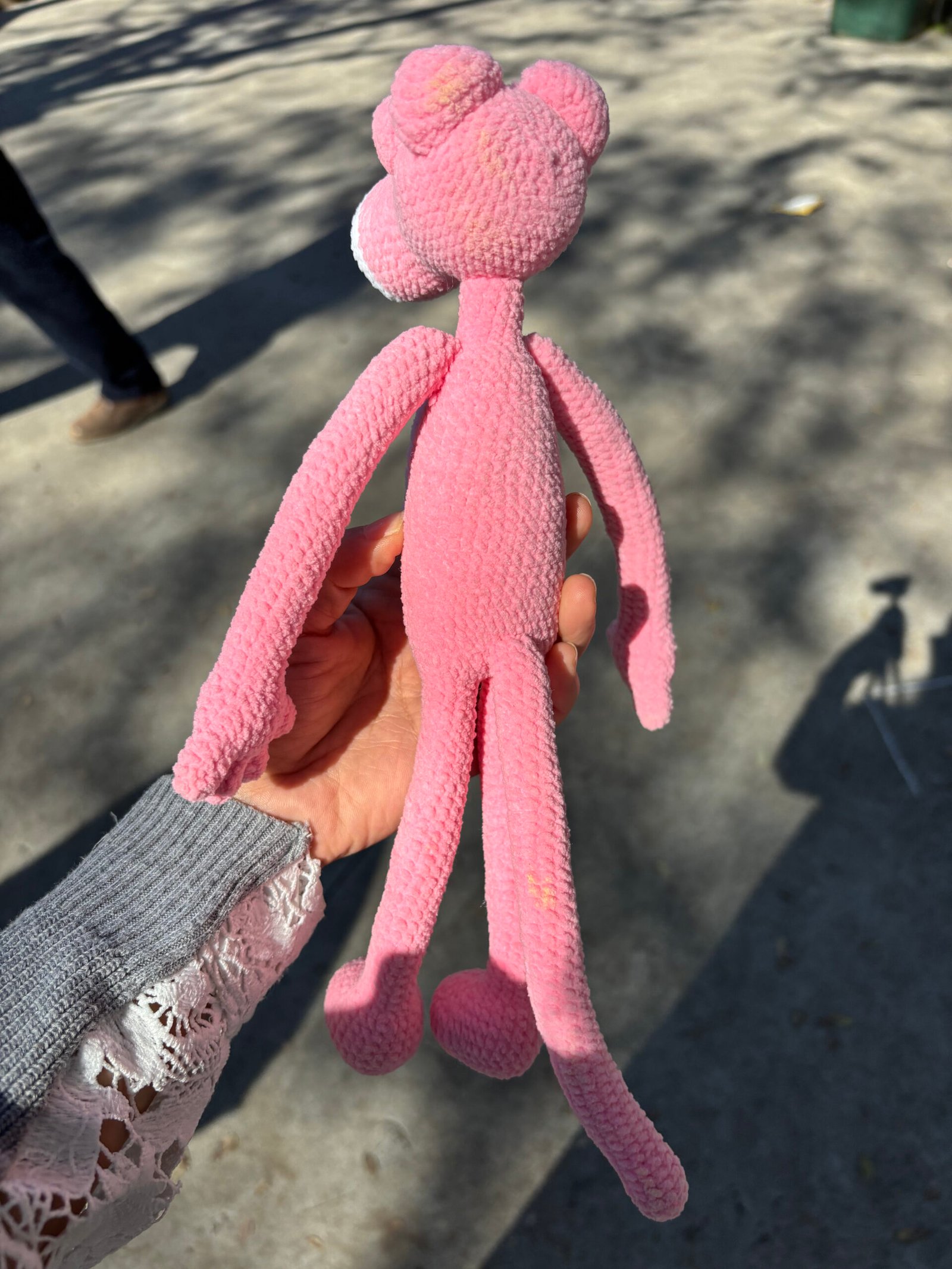 【UNIQUE CROCHET COMPANION】Our hand-crochet long-legged Pink Panther comfort doll is meticulously crafted by hand, each piece brimming with the artisan’s care and warmth. This playful design features a bright pink body with a white belly patch, iconic yellow eyes, a pink nose, and long flexible limbs—creating a one-of-a-kind companion that feels like a lively cartoon friend for little ones. No two dolls are identical, making yours a unique keepsake that stands out in any child’s collection. It’s not just a toy; it’s a loyal companion that will share in every hug and playful moment, creating lasting childhood memories.