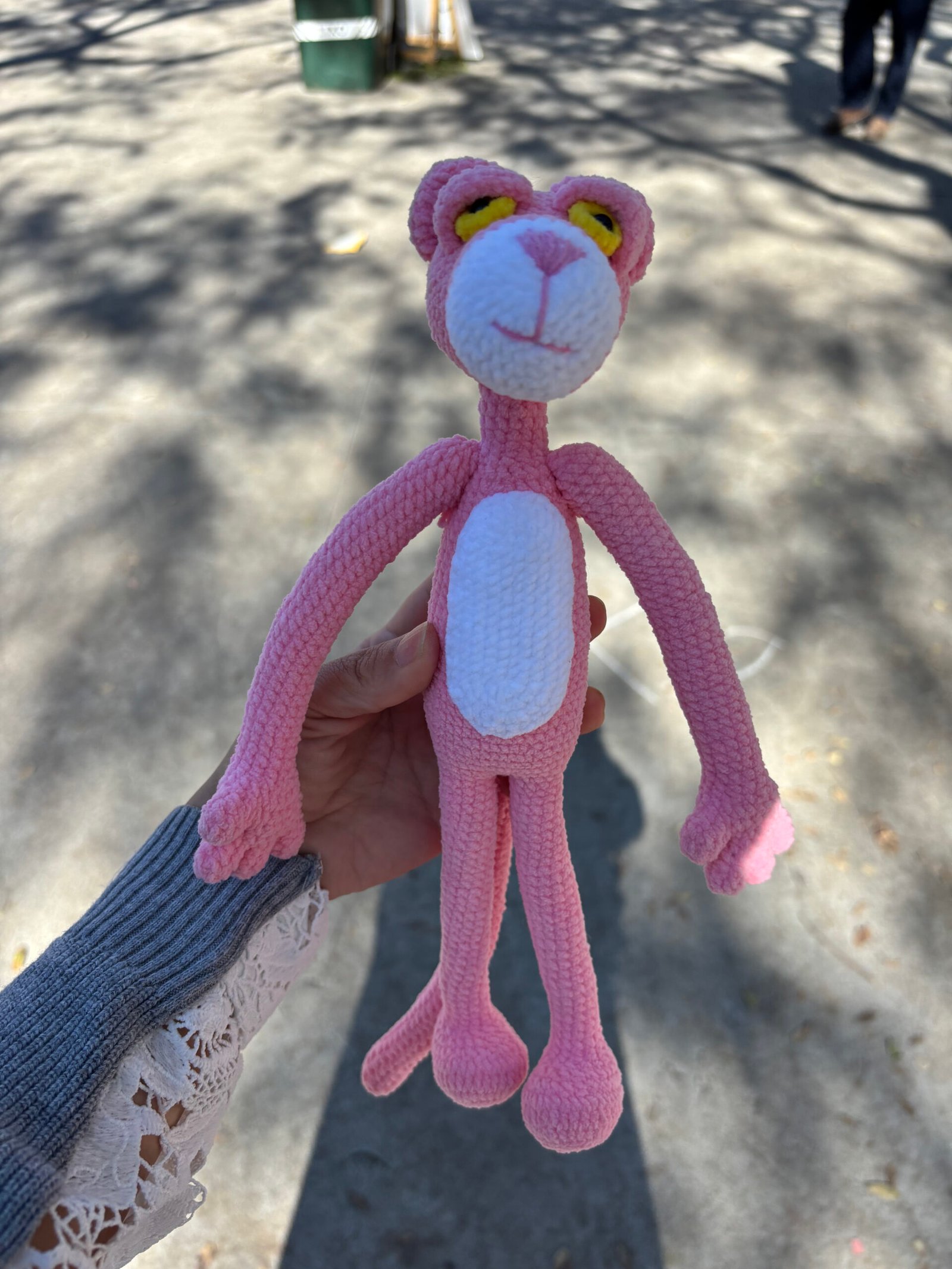 【SOFT & SAFE MATERIALS】Made from premium skin-friendly chenille yarn, this crochet Pink Panther doll is incredibly soft, plush, and safe for little hands. The breathable, non-toxic material is gentle against sensitive skin, free from harsh chemicals or odors, ensuring your child can snuggle, squeeze, and play with confidence. The sturdy hand-crochet stitching ensures durability, so this beloved companion can withstand years of hugs and adventures.