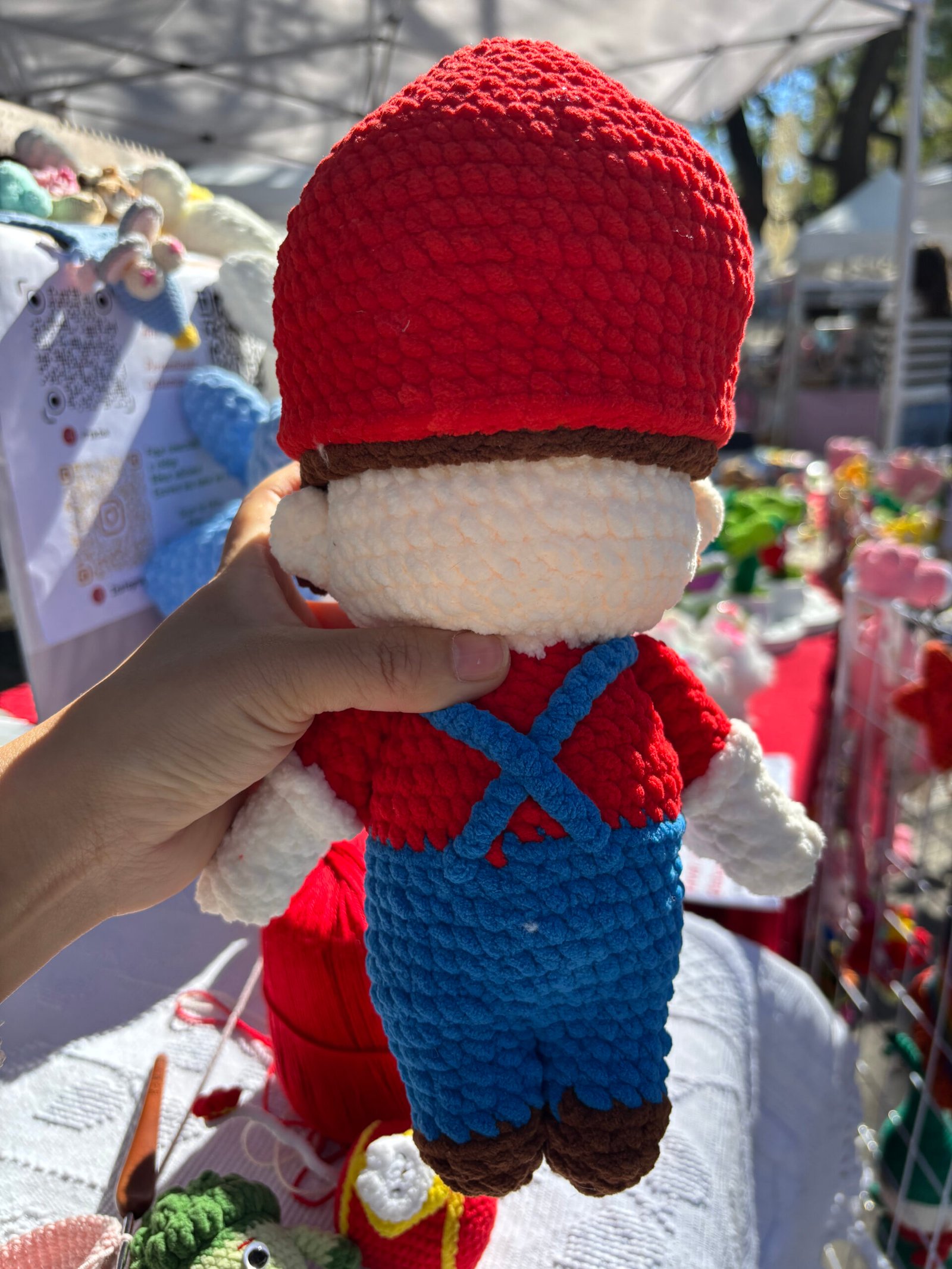 【UNIQUE CROCHET COMPANION】Our hand-crochet Mario comfort doll is meticulously crafted by hand, each piece brimming with the artisan’s care and warmth. This classic design features a bright red cap with the iconic “M” logo, red shirt, blue overalls with yellow buttons, and signature brown mustache—creating a one-of-a-kind companion that feels like a beloved video game friend for little ones. No two dolls are identical, making yours a unique keepsake that stands out in any child’s collection. It’s not just a toy; it’s a loyal companion that will share in every hug and playful adventure, creating lasting childhood memories.