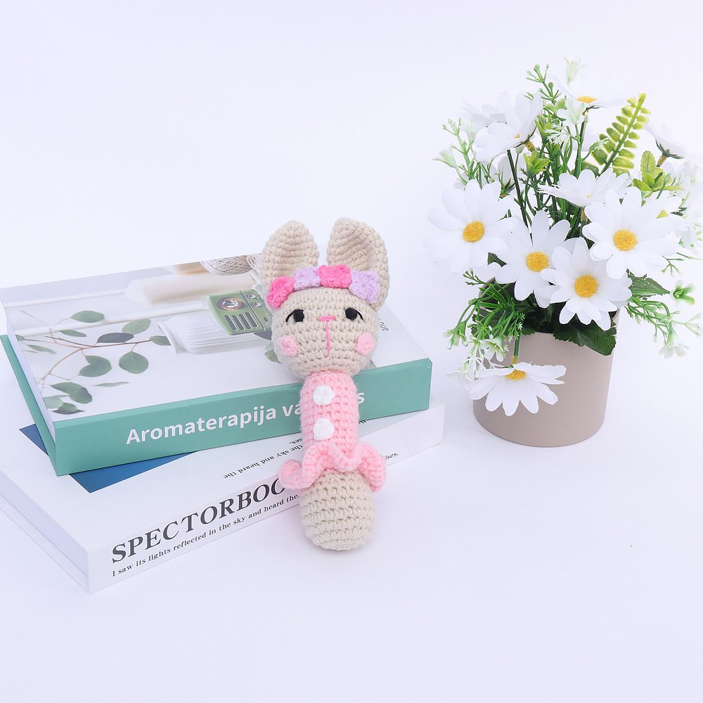 【UNIQUE CROCHET COMPANION】Our hand-crochet pink bunny handle rattle is meticulously crafted by hand, each piece brimming with the artisan’s care and warmth. This adorable design features a soft beige bunny with long ears, a pink-purple flower headband, and a frilly pink dress—creating a one-of-a-kind sensory companion that feels like a gentle furry friend for little ones. No two rattles are identical, making yours a unique keepsake that stands out in any baby’s collection. It’s not just a toy; it’s a quiet companion that will soothe and comfort your baby, creating precious early childhood memories.