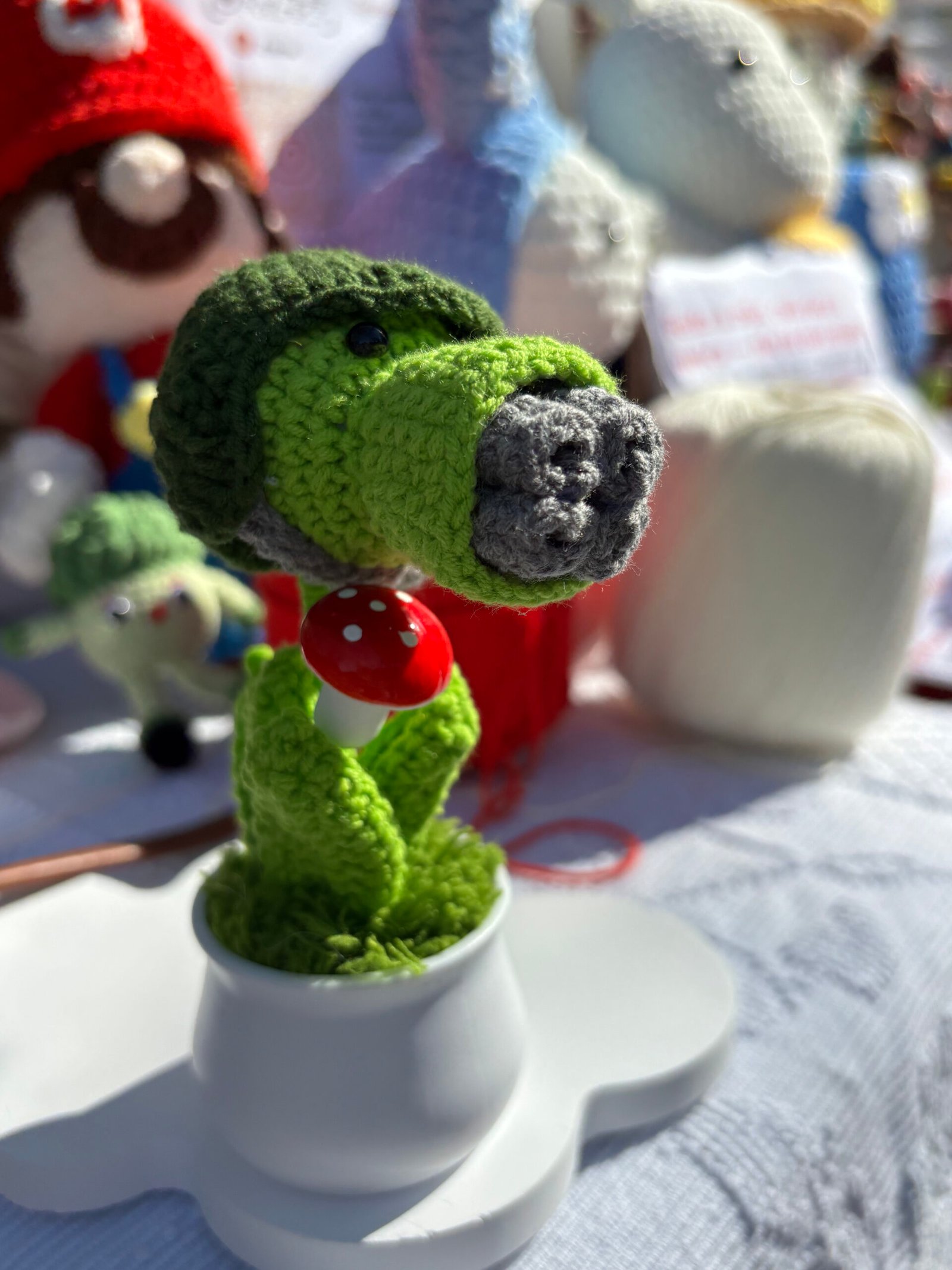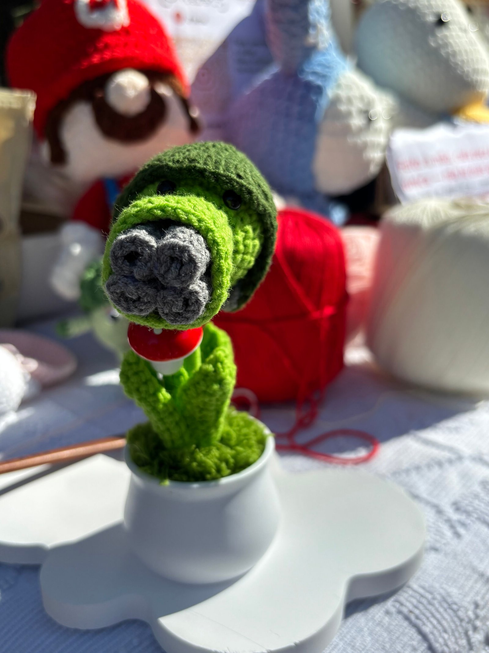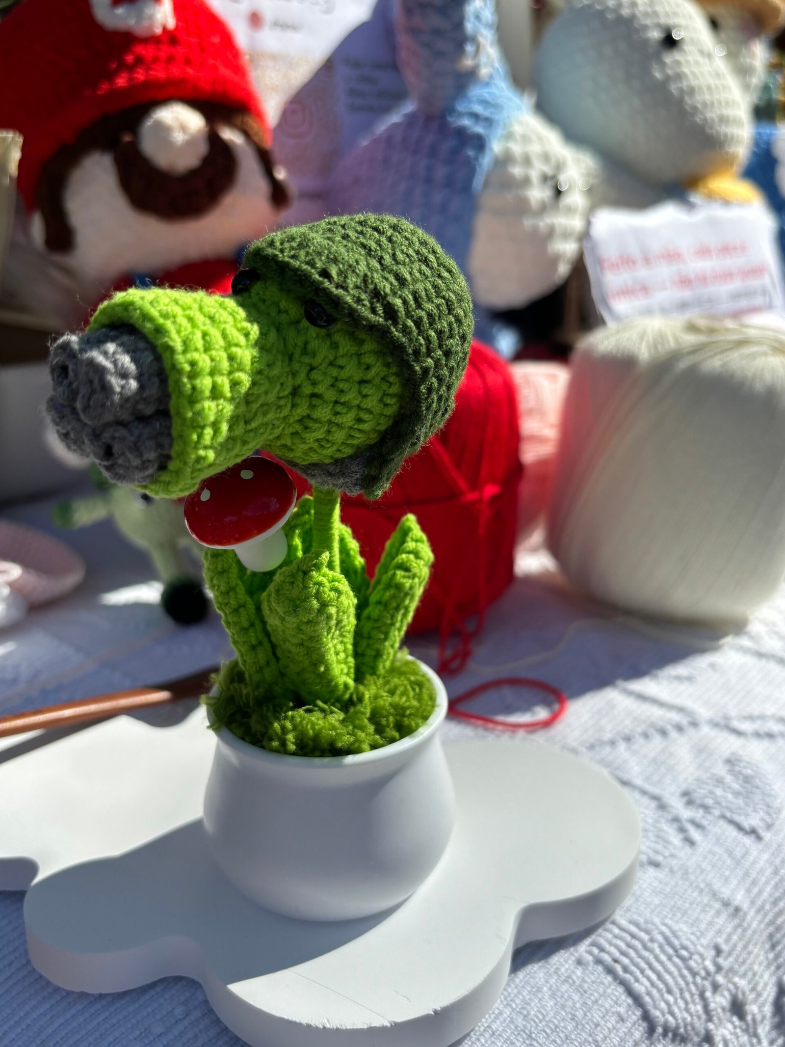 【CARE INSTRUCTIONS】Easy to care for: simply spot clean the crocheted portion with cold water and mild soap, avoiding full submersion. Wipe the plastic pot with a dry cloth to maintain its smooth finish. Gently reshape the cannon body, leaves, and mushroom after cleaning to maintain its cute silhouette.