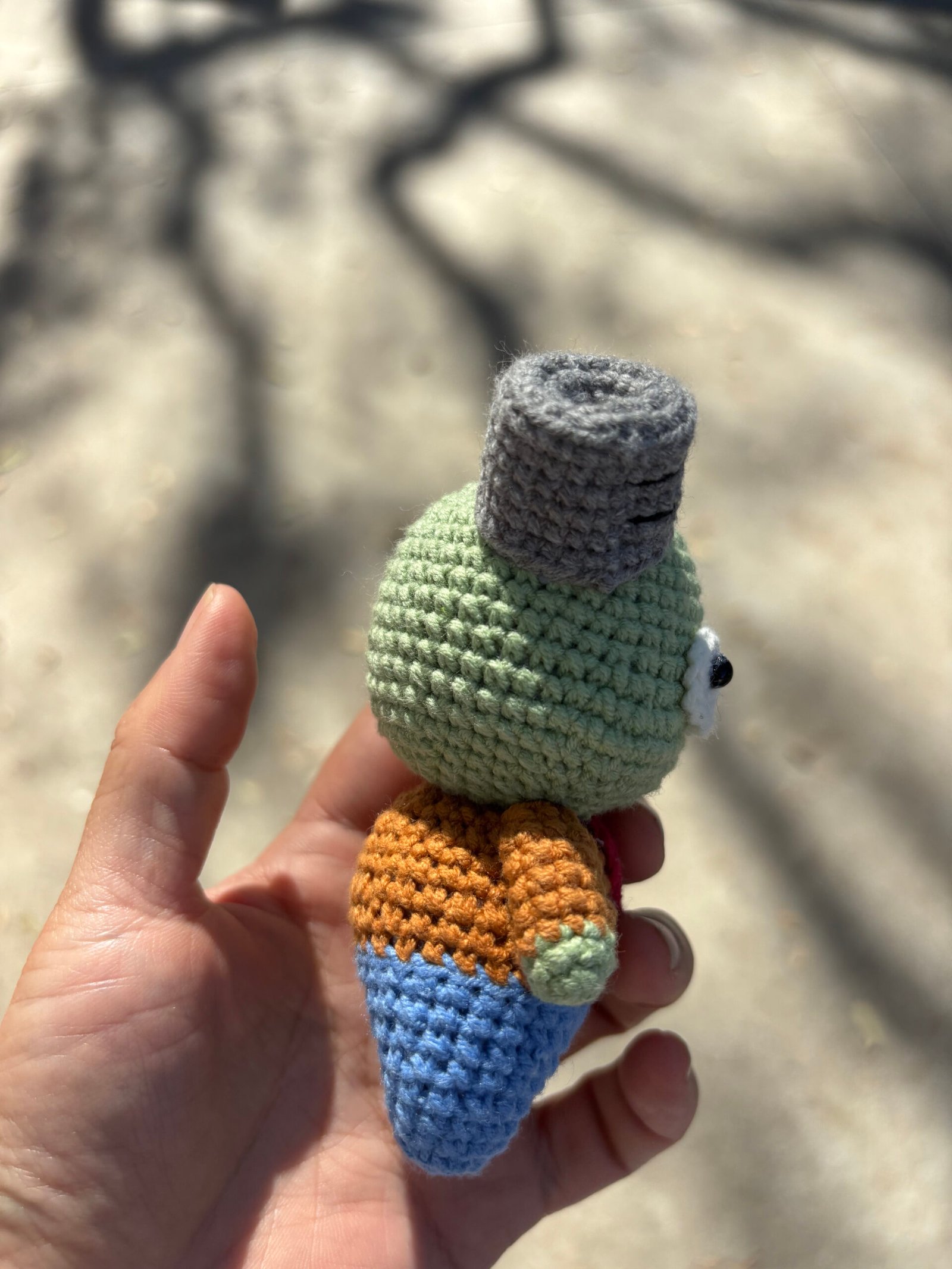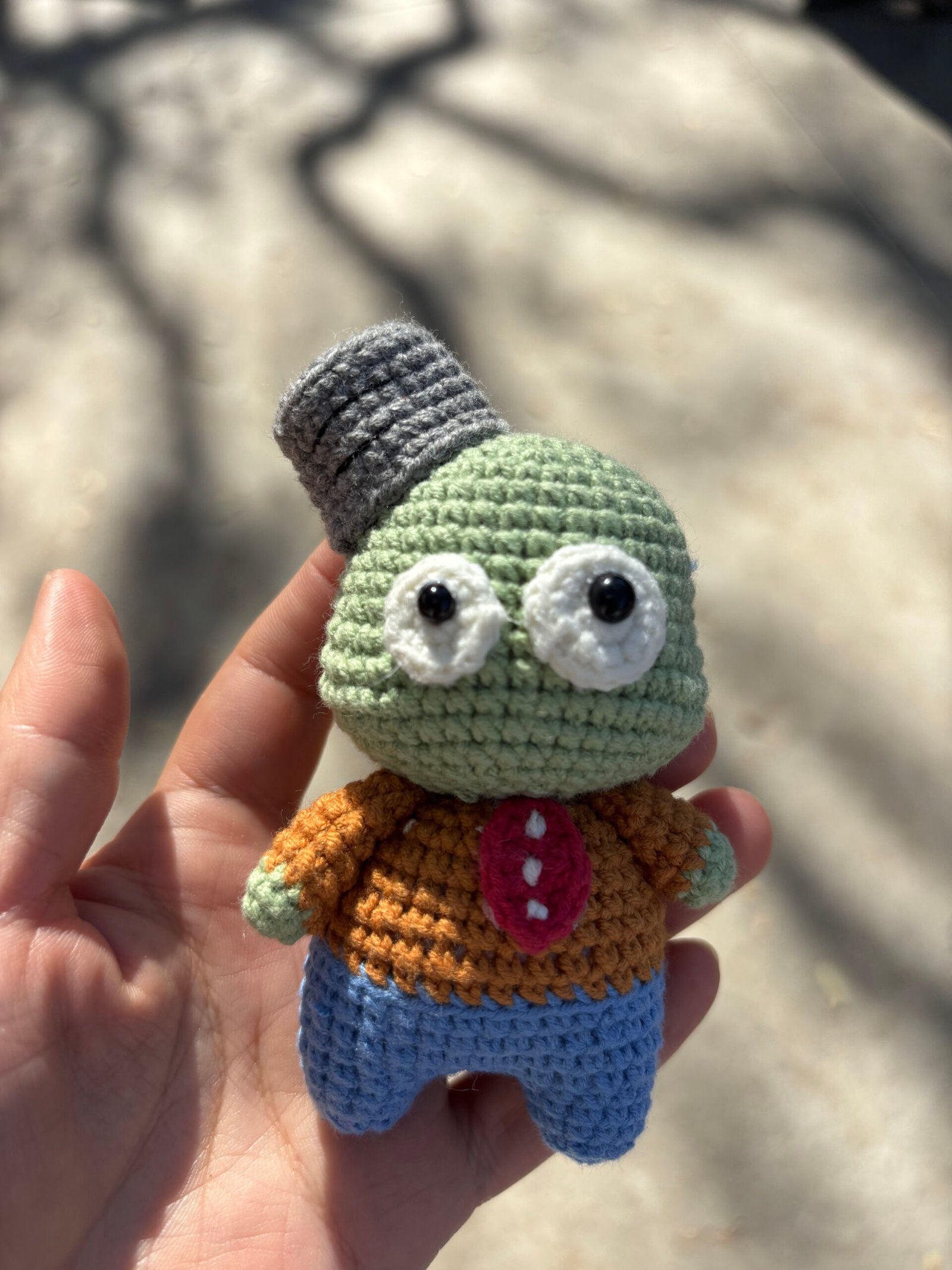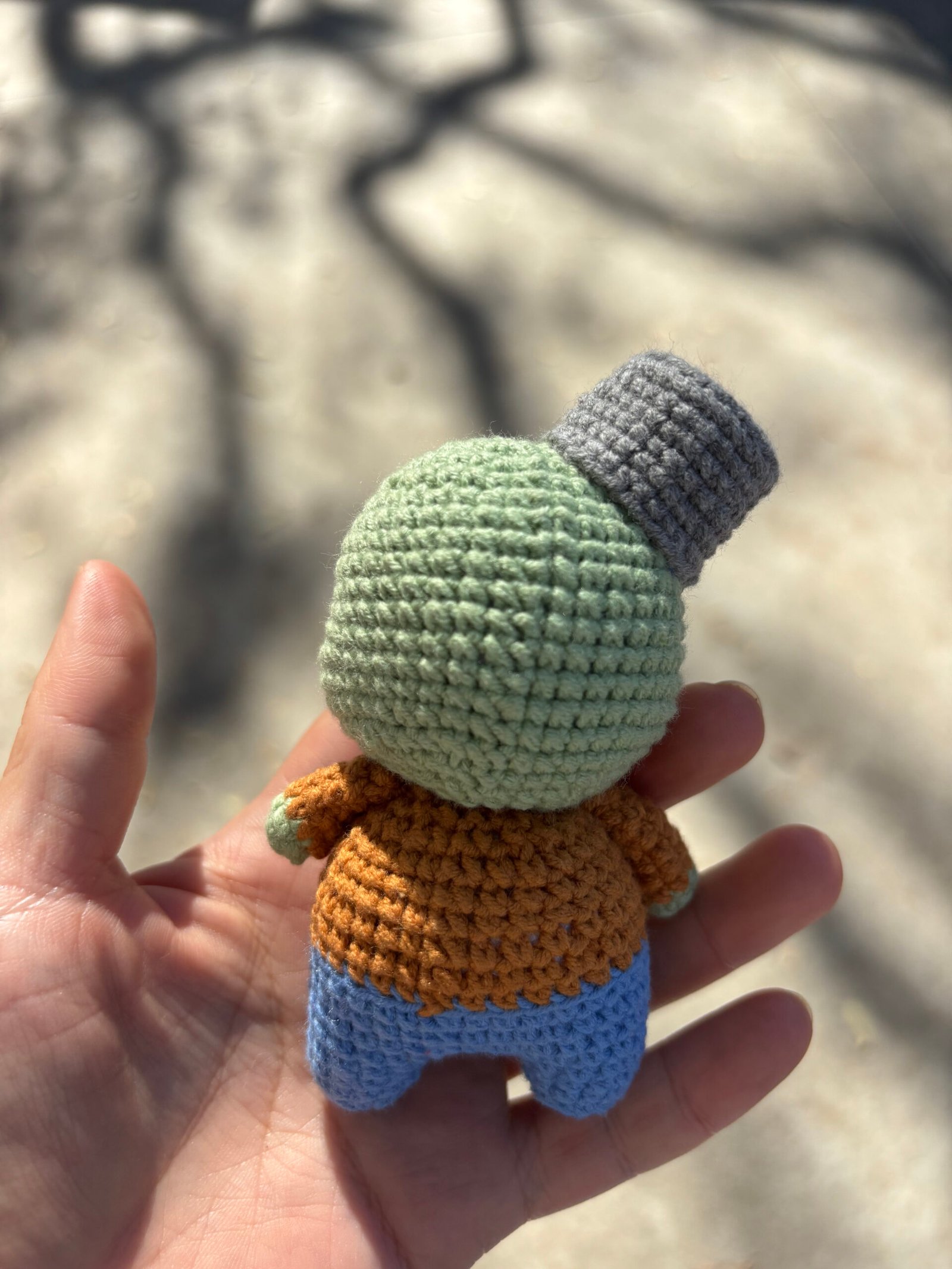 【UNIQUE CROCHET PLUSH DOLL】Our hand-crochet Plants vs. Zombies Zombie plush doll is meticulously crafted by hand, each piece brimming with the artisan’s care and warmth. This nostalgic design features a light green zombie head with a gray striped “screw” detail, large white eyes with black safety pupils, an orange shirt with a red strawberry-shaped patch, blue pants, and green hand accents—creating a one-of-a-kind companion that feels like a beloved game character come to life. No two dolls are identical, making yours a unique keepsake that stands out in any plush collection. It’s not just a toy; it’s a stress-relief buddy that will bring a smile to your face every time you hold it, creating lasting moments of calm and joy.