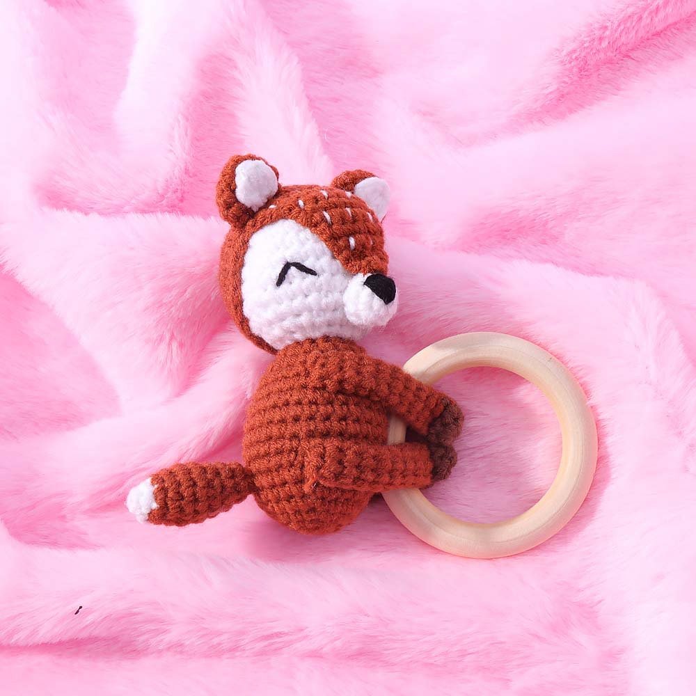 【SOFT & SAFE MATERIALS】Made from premium skin-friendly cotton yarn and food-grade wooden ring, this crochet fox teething ring is incredibly soft, safe, and gentle for tiny hands and mouths. The breathable, non-toxic material is kind to sensitive skin, free from harsh chemicals or odors, ensuring your baby can chew, grasp, and play with confidence. The sturdy hand-crochet stitching ensures durability, so this beloved teether can withstand years of teething and exploration.