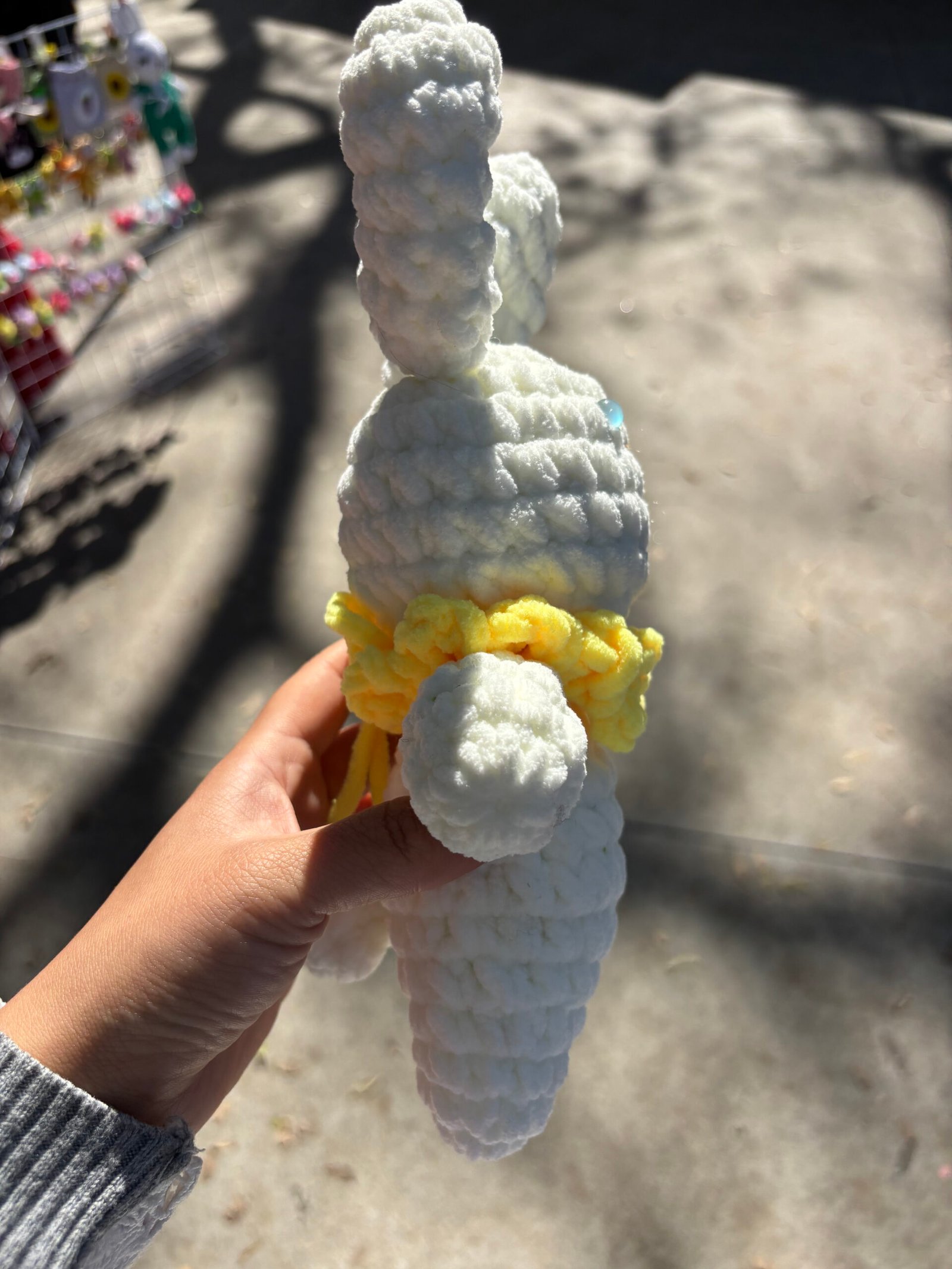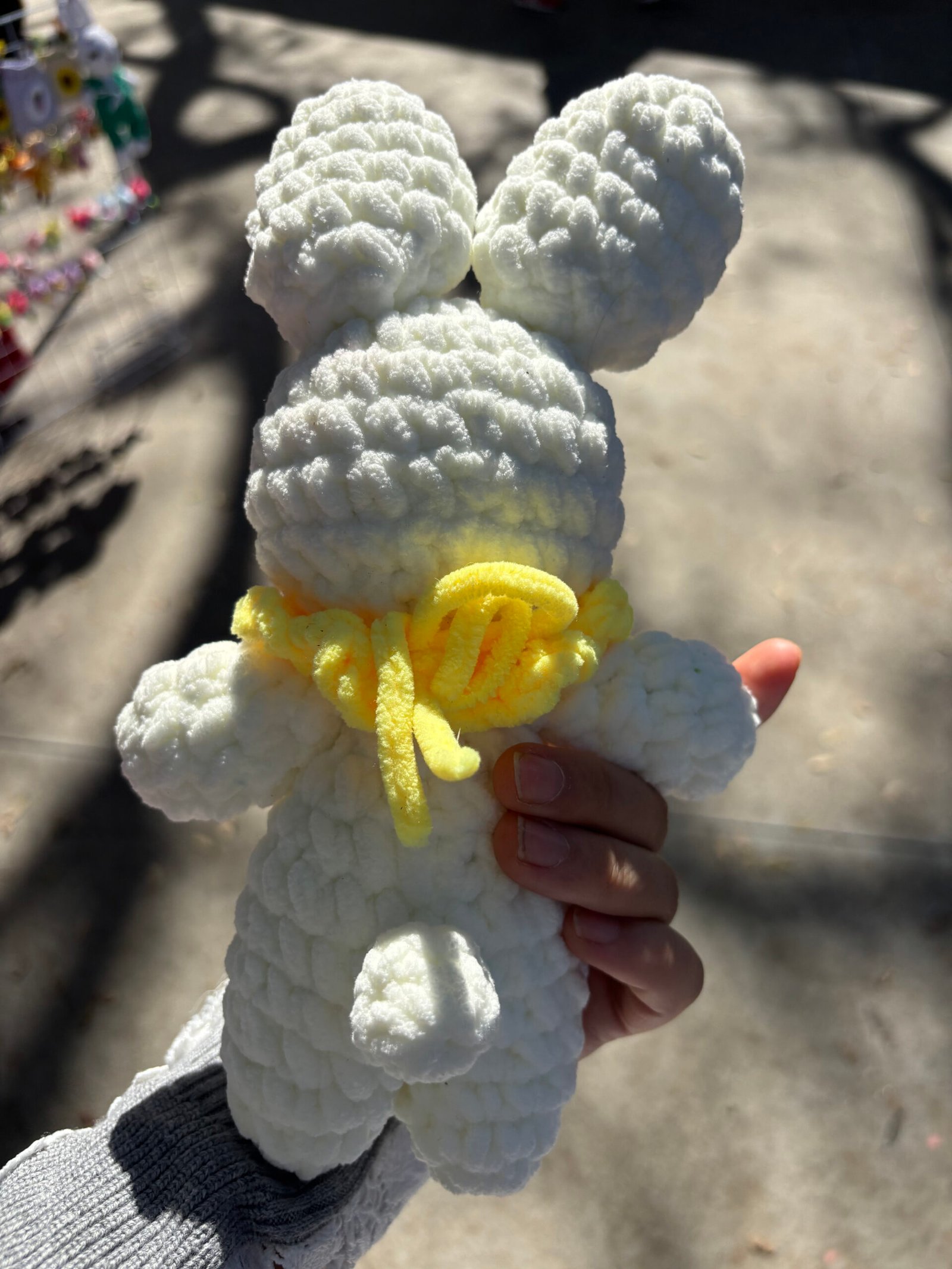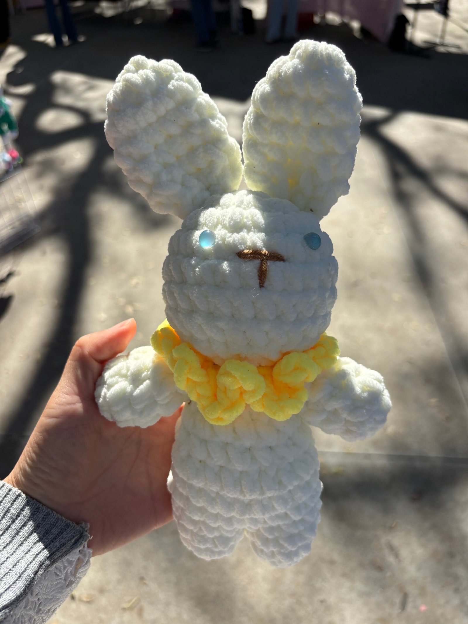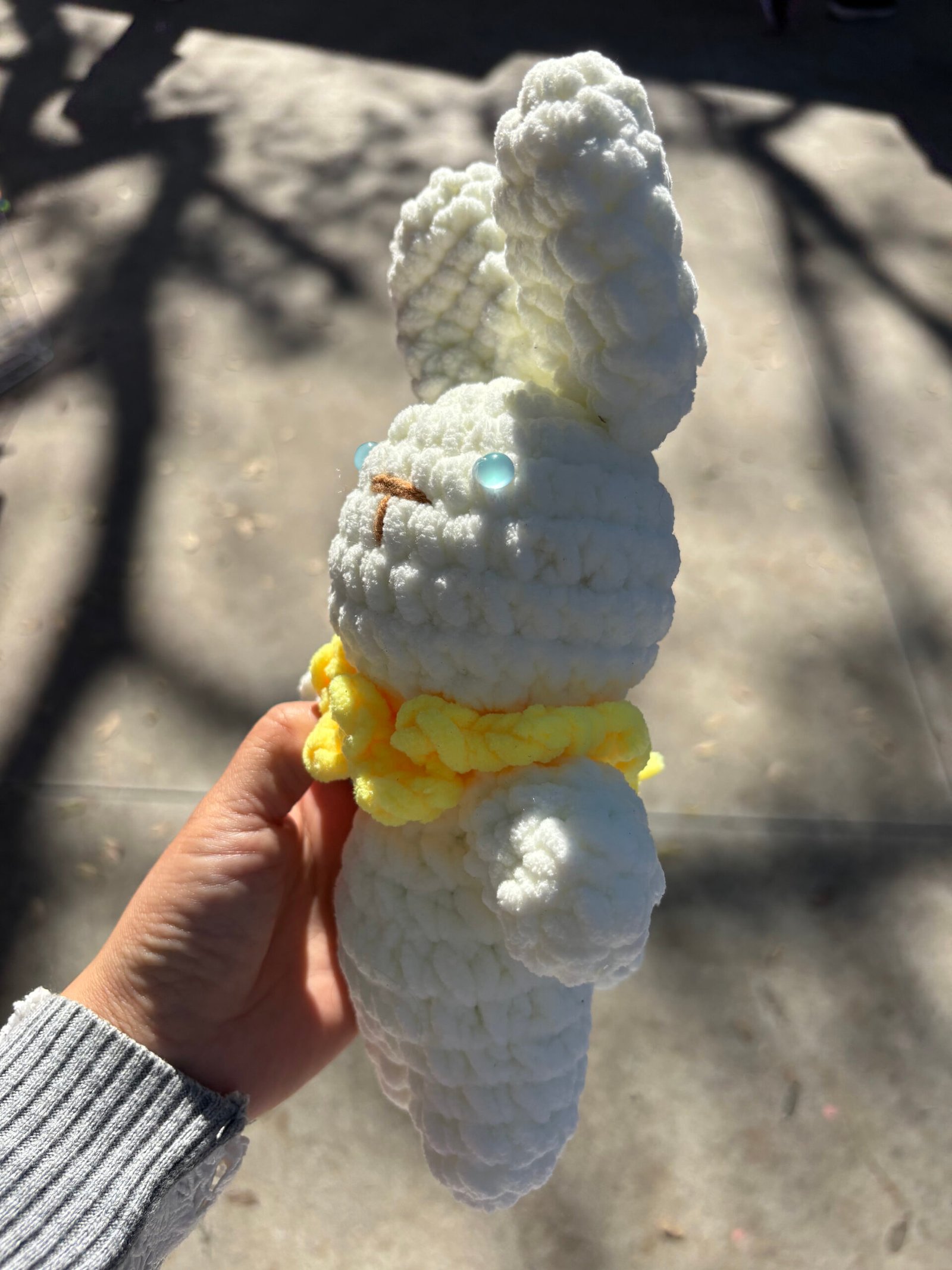 【UNIQUE CROCHET COMPANION】Our hand-crochet white bunny with yellow collar comfort doll is meticulously crafted by hand, each piece brimming with the artisan’s care and warmth. This adorable design features a fluffy white bunny with large textured ears, bright blue eyes, a brown stitched nose, and a cheerful yellow ruffled collar—creating a one-of-a-kind companion that feels like a gentle furry friend for little ones. No two dolls are identical, making yours a unique keepsake that stands out in any child’s collection. It’s not just a toy; it’s a loyal companion that will share in every hug and quiet moment, creating lasting childhood memories.