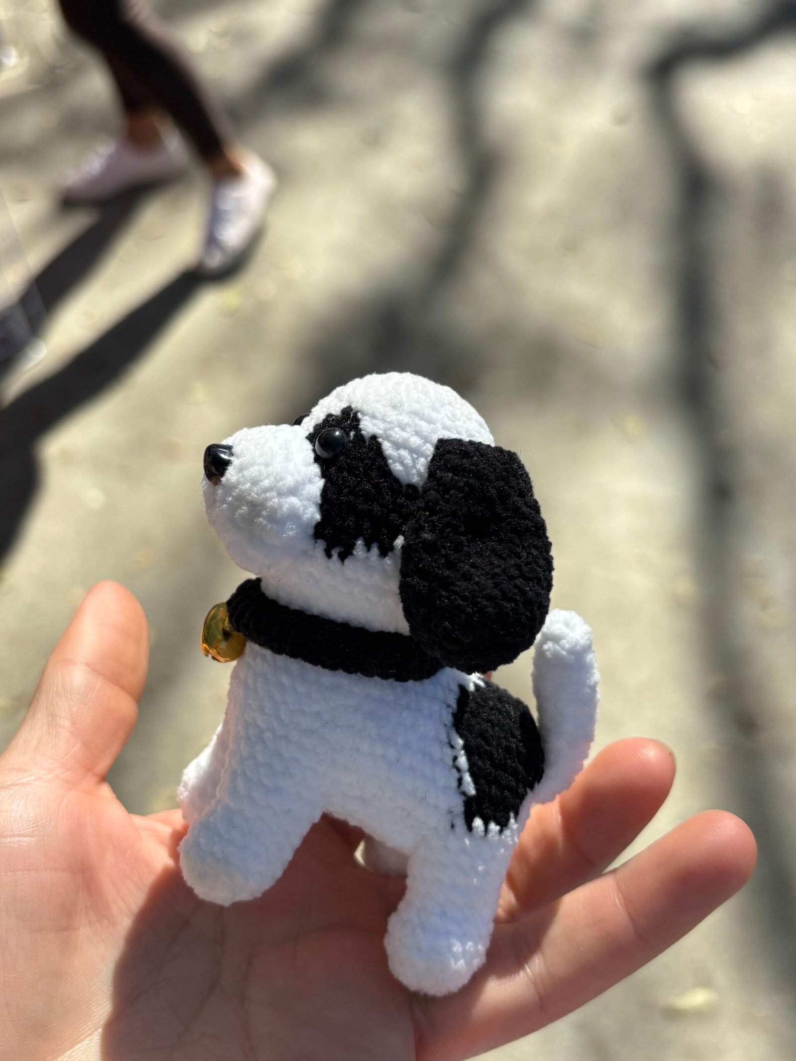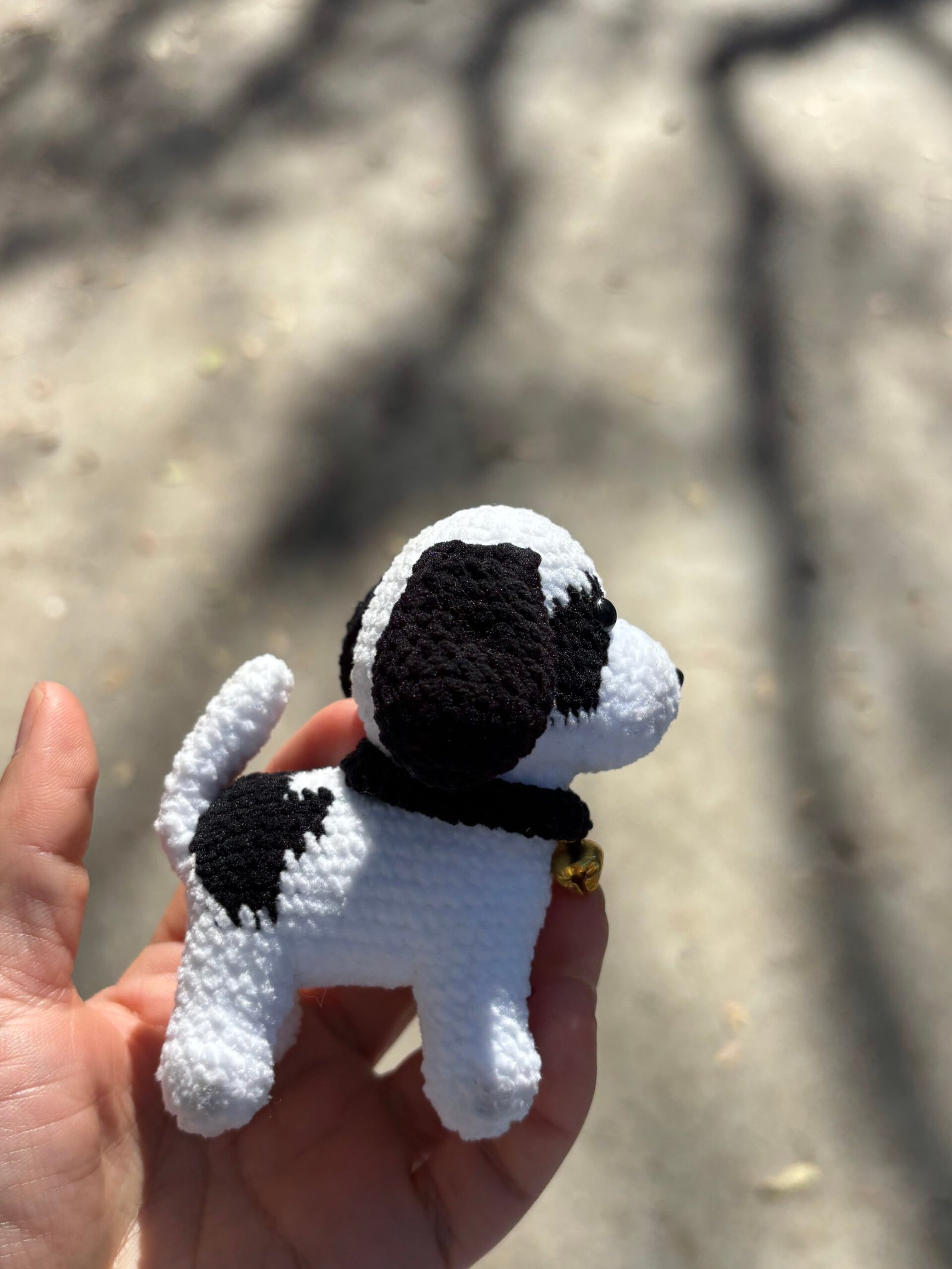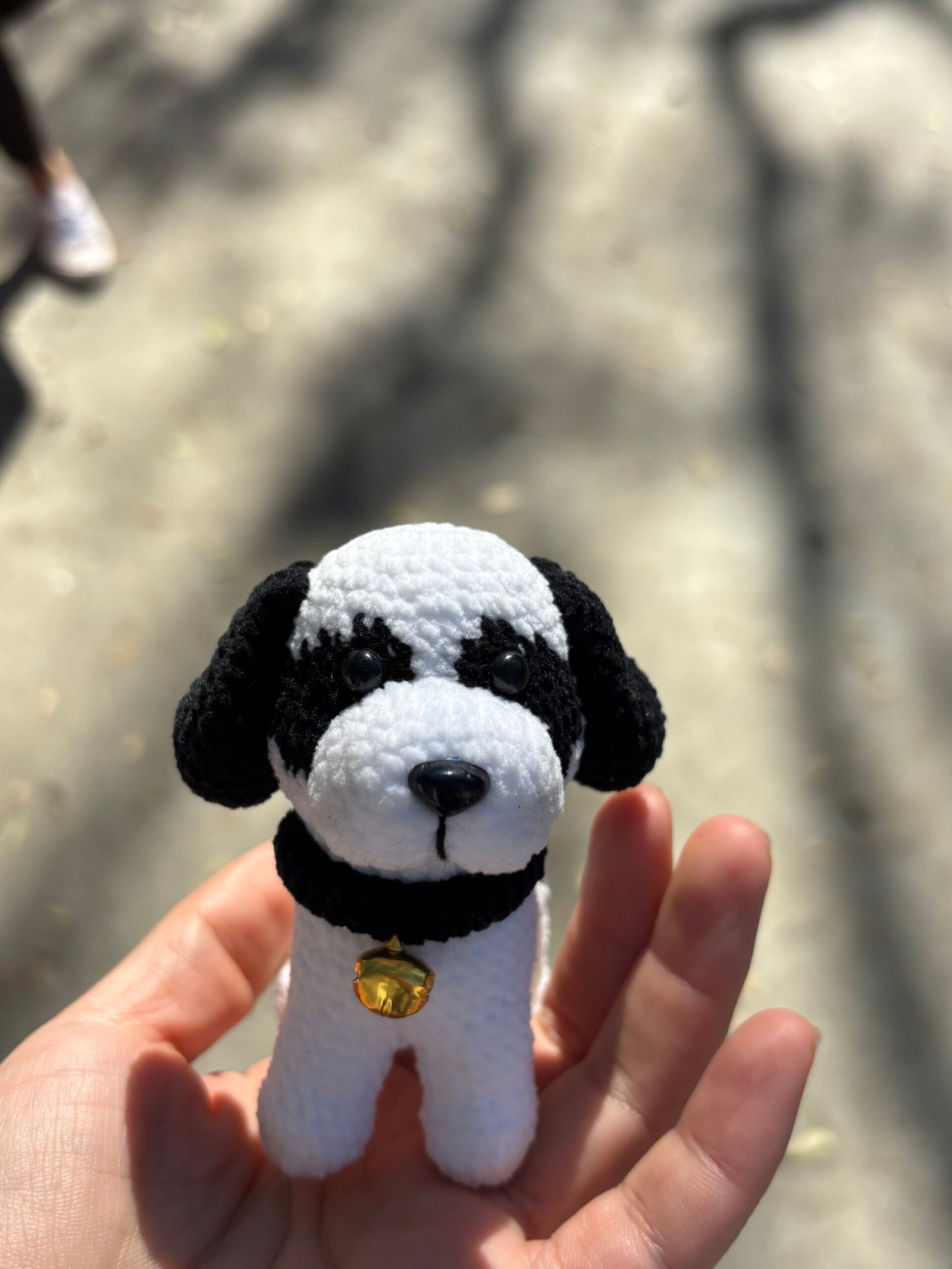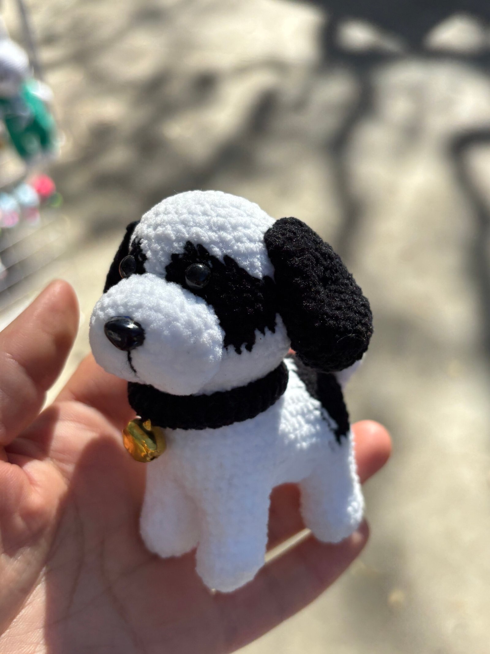 【UNIQUE CHARM】Our hand-knitted black & white puppy keychain is meticulously crafted by hand, each piece brimming with the artisan’s care and warmth. This whimsical design features a fluffy black-and-white puppy silhouette, floppy black ears, a black collar with a tiny golden bell, and a friendly expression—creating a one-of-a-kind cute charm that feels like a loyal little friend. No two keychains are identical, making yours a unique keepsake that will stand out on any bag or keyring. It’s not just an accessory; it’s a playful companion that brings a smile to every glance, sparking joy and warmth wherever you go.