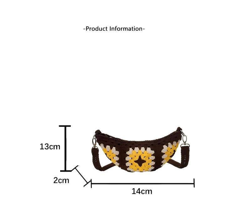 【UNIQUE】Our hand-knitted crescent bags are meticulously crafted by hand, each piece brimming with the artisan’s care and warmth. This charming design features classic granny square sunflower motifs in warm brown and yellow, creating a cozy bohemian aesthetic that’s truly one-of-a-kind. No two bags are identical, making yours a unique expression of your style. It’s not just a bag; it’s a wearable piece of art that adds a nostalgic, rustic touch to your daily look. As a gift, it conveys warmth and thoughtfulness, making the recipient feel instantly cherished.