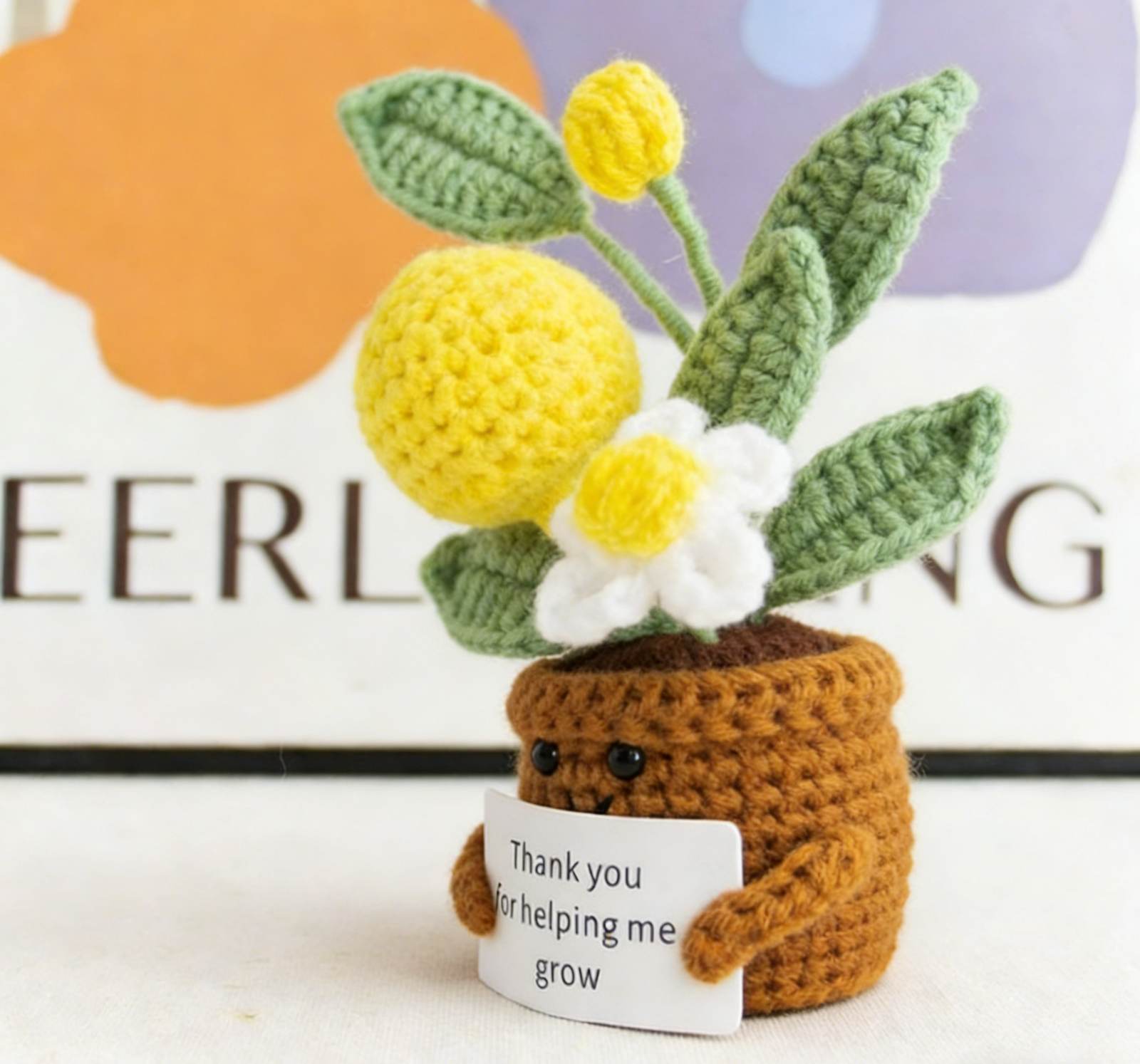 Our hand‑knitted plant doll and encouragement buddy are carefully crafted with love, each piece carrying warmth, healing, and a little bit of magic. The adorable shape, paired with a cheerful encouragement card, brings a bright and uplifting vibe to any desk. Whether you need a little pick‑me‑up or a daily dose of motivation, this cute plant doll is here to give you a smile and remind you that you’re doing great. Its unique handmade design makes it one‑of‑a‑kind, adding a touch of whimsy and personality to your space.