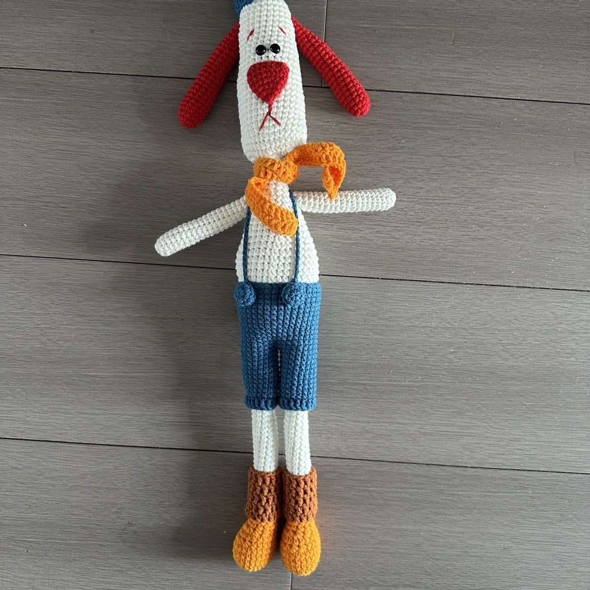 【UNIQUE COMPANION】Our hand-knitted long-legged dog doll is meticulously crafted by hand, each piece brimming with the artisan’s care and warmth. This whimsical design features a playful long-legged silhouette, bright red ears, and a cheerful orange scarf, creating a one-of-a-kind companion that feels like a loyal friend. No two dolls are identical, making yours a unique keepsake that will stand out in any child’s collection. It’s not just a toy; it’s a gentle companion that will share in every laugh and quiet moment, creating lasting childhood memories.