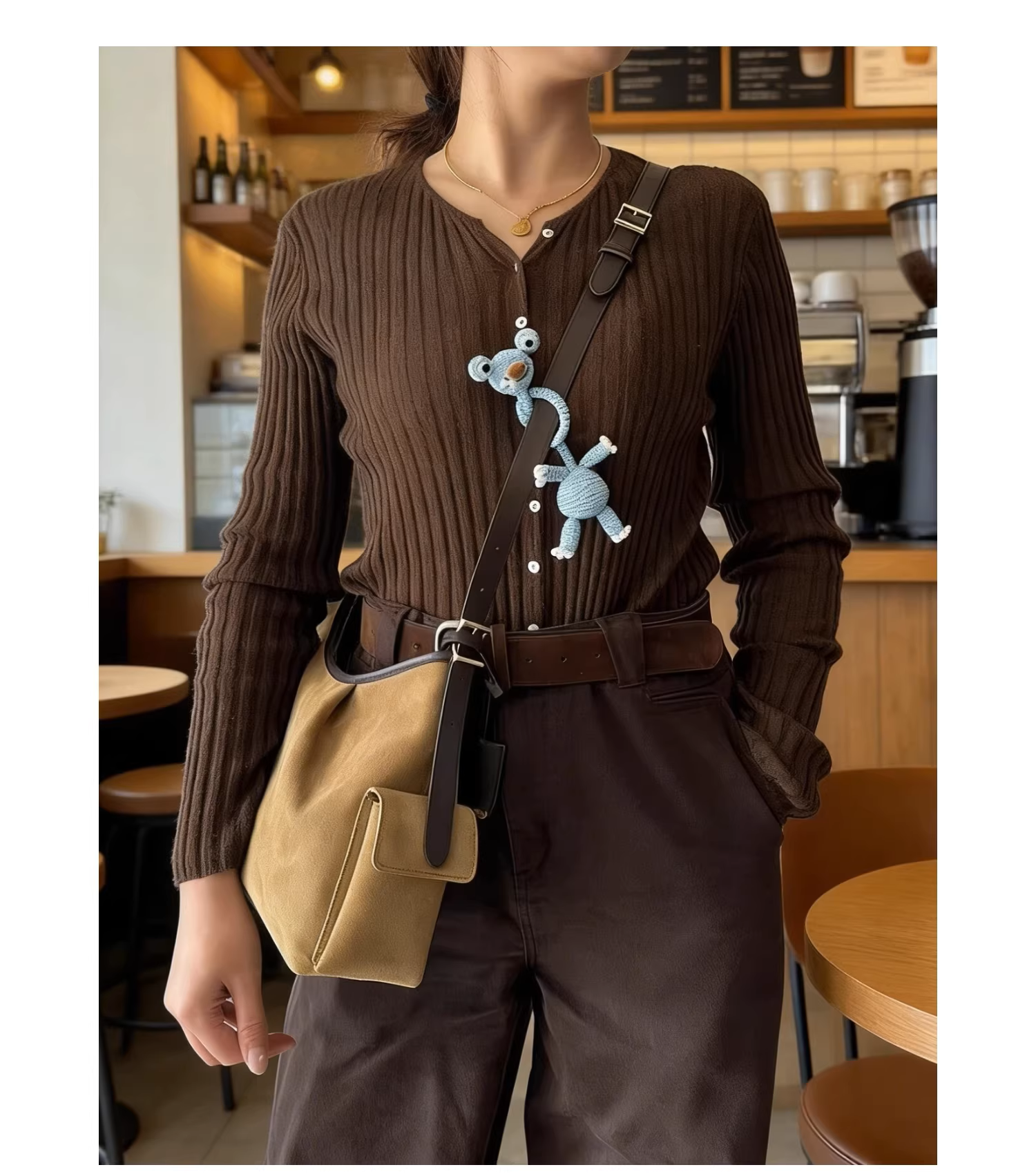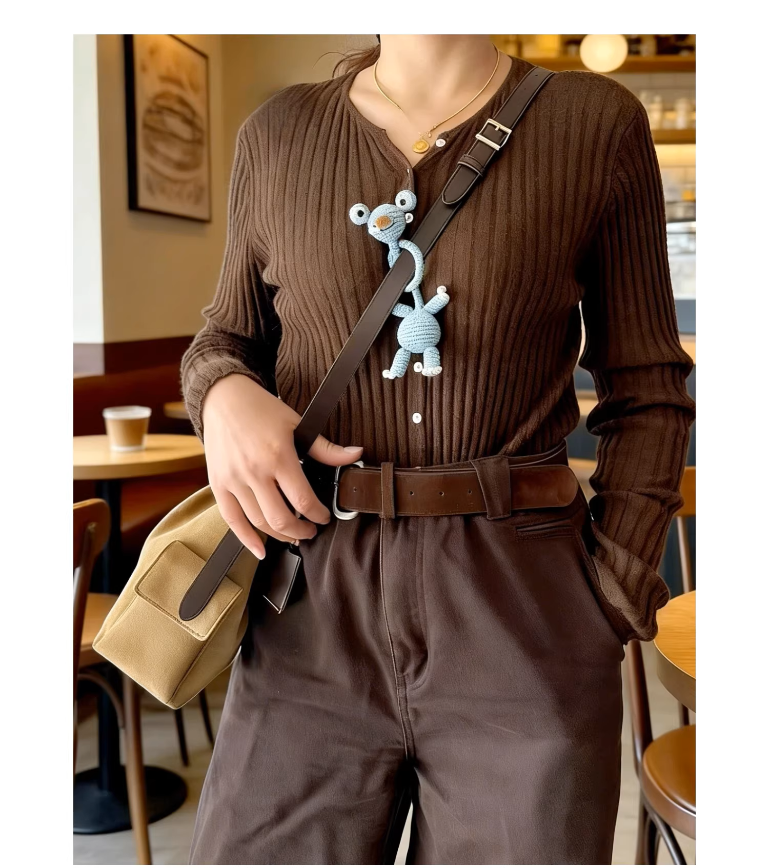 【UNIQUE CHARM】Our hand-knitted long-neck sloth keychain is meticulously crafted by hand, each piece brimming with the artisan’s care and warmth. This whimsical design features a playful long-neck silhouette, big googly eyes, a tiny buck tooth, and a round fuzzy body—creating a one-of-a-kind cartoon charm that feels like a slow, friendly companion from the forest. No two keychains are identical, making yours a unique keepsake that will stand out on any bag or keyring. It’s not just an accessory; it’s a laid-back companion that brings a calm, smiley vibe to every glance, sparking joy and nostalgia wherever you go.