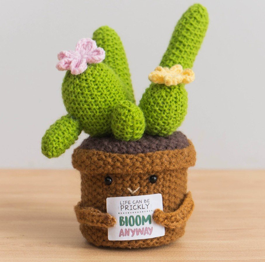 Our hand‑knitted plant doll and encouragement buddy are carefully crafted with love, each piece carrying warmth, healing, and a little bit of magic. The adorable shape, paired with a cheerful encouragement card, brings a bright and uplifting vibe to any desk. Whether you need a little pick‑me‑up or a daily dose of motivation, this cute plant doll is here to give you a smile and remind you that you’re doing great. Its unique handmade design makes it one‑of‑a‑kind, adding a touch of whimsy and personality to your space.