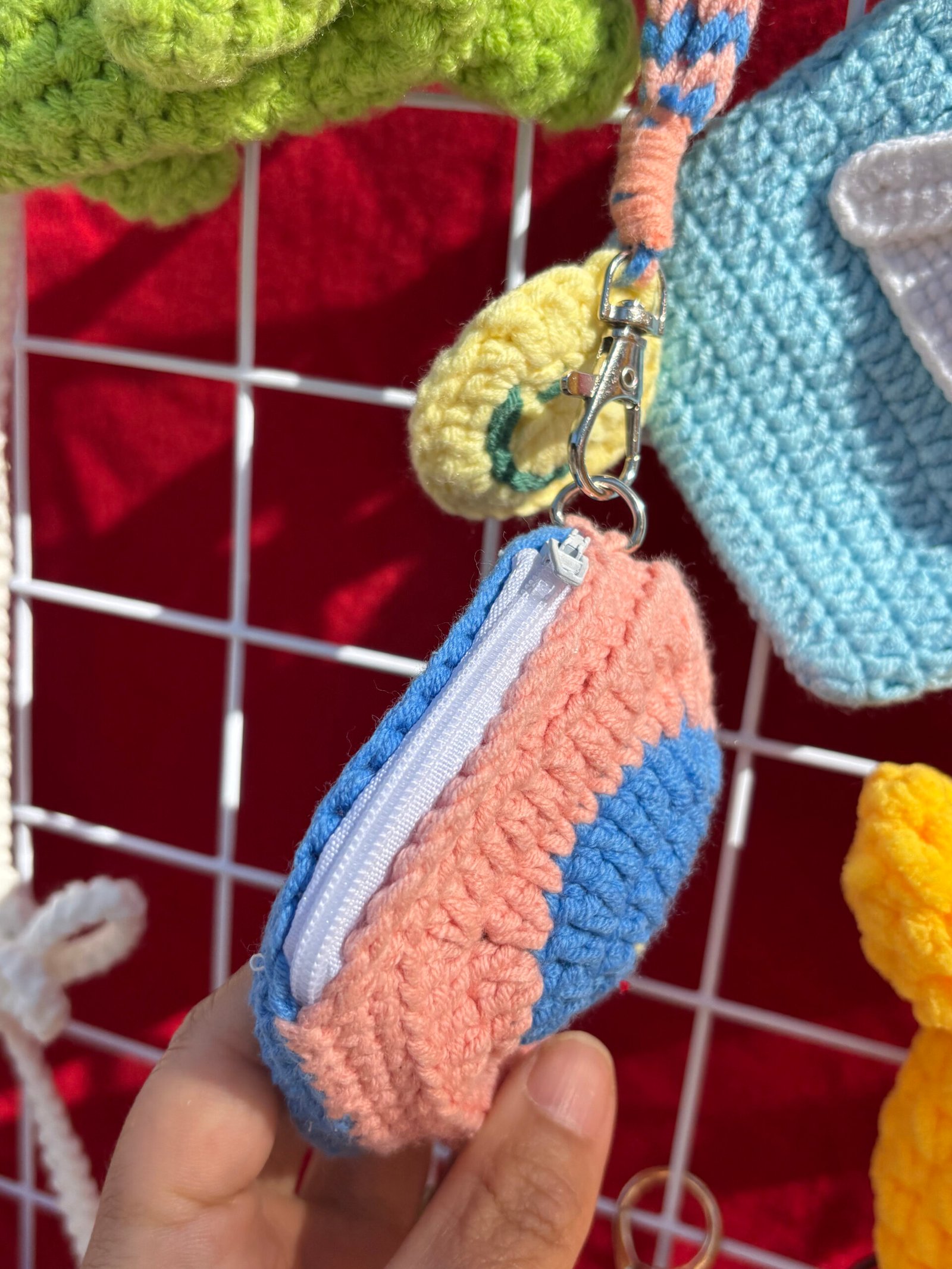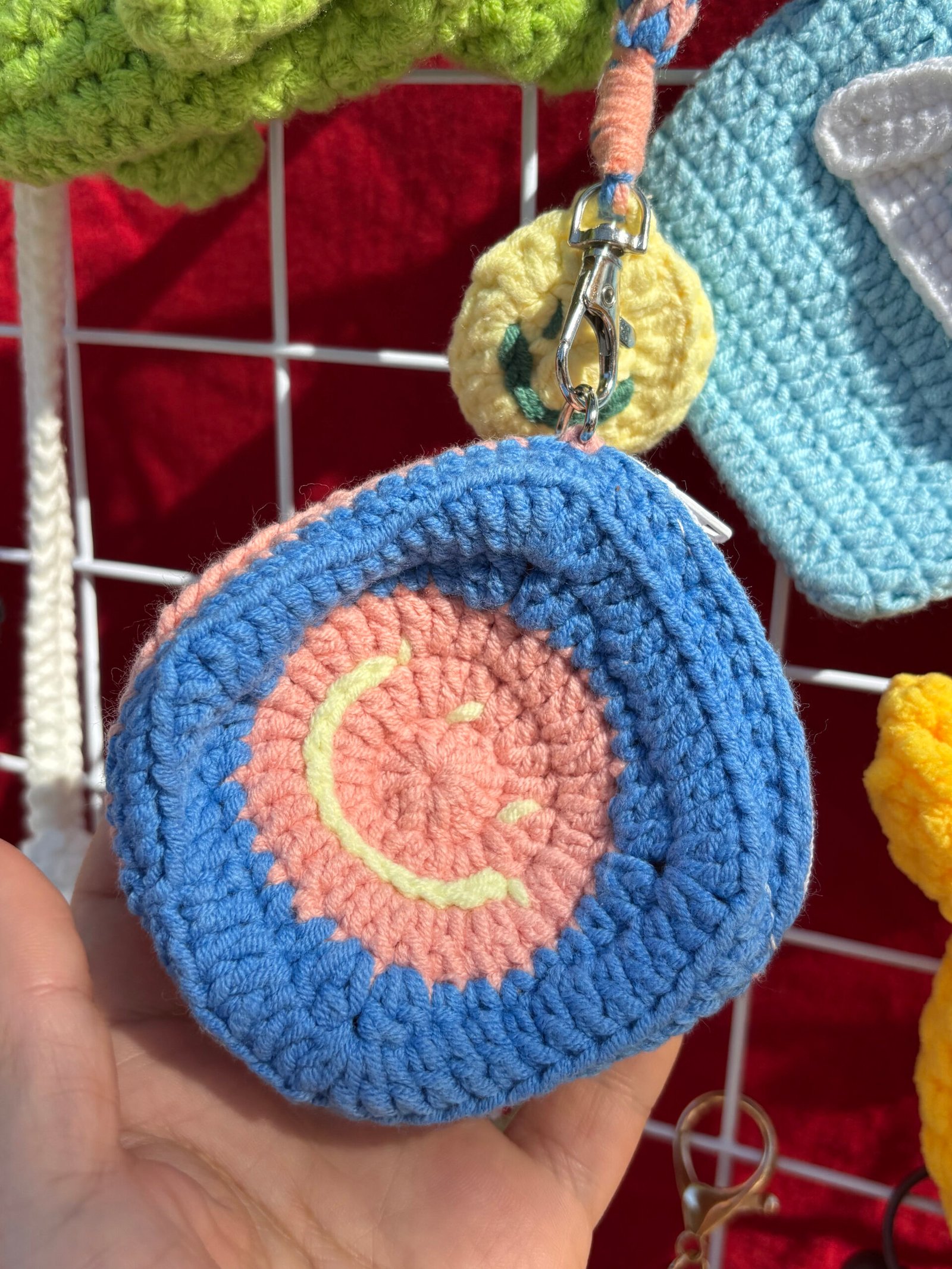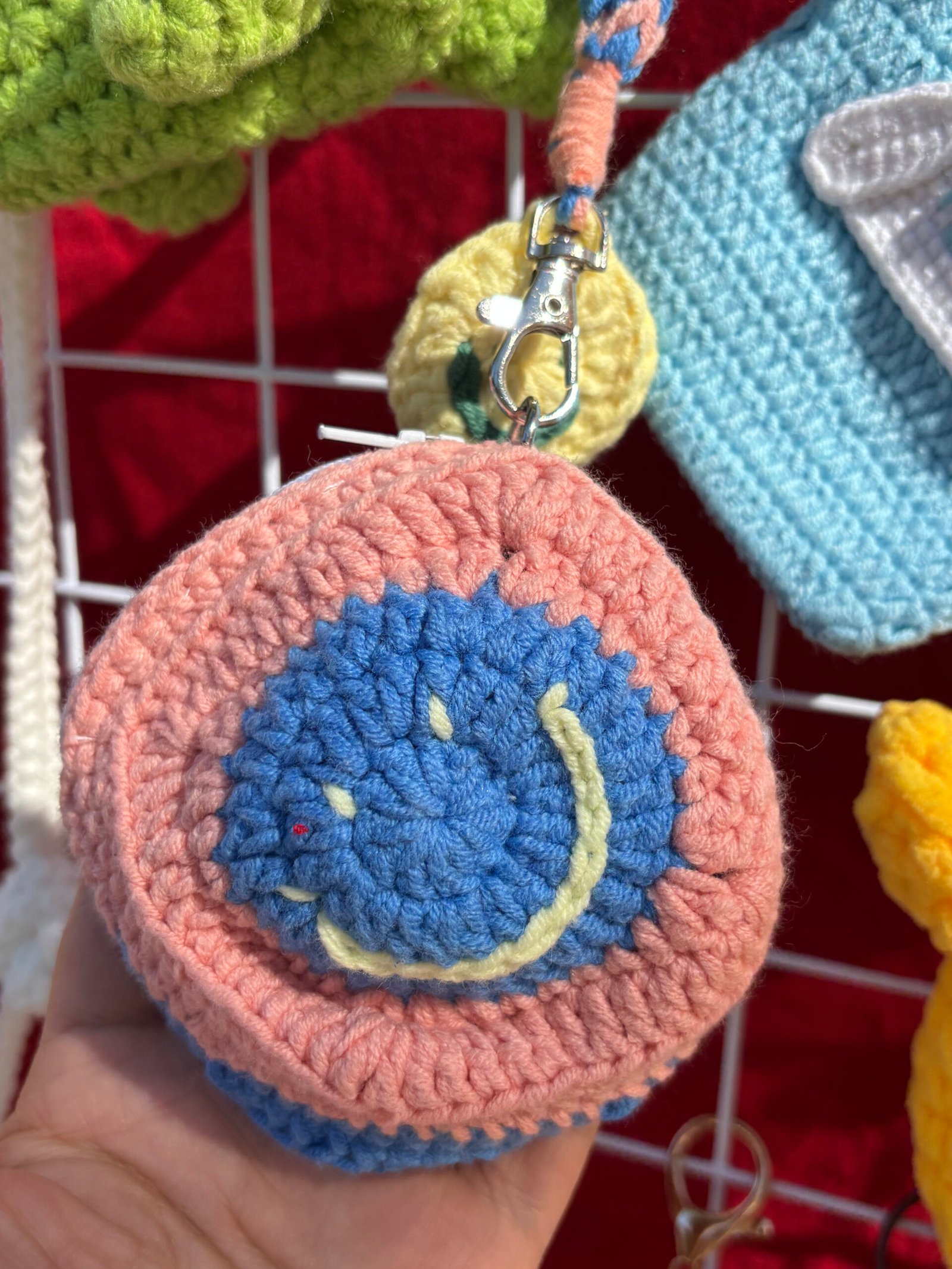 【UNIQUE】Our hand-knitted smiley coin purses are meticulously crafted by hand, each piece brimming with the artisan’s care and warmth. This cheerful design features a bright blue smiley face with a yellow outline, set against a soft pink and blue crochet base, creating a playful, uplifting aesthetic that’s truly one-of-a-kind. No two are exactly the same, so yours will be uniquely charming. It’s not just a storage item; it’s a tiny wearable piece of joy that adds a smile to your daily look. As a gift, it conveys happiness and thoughtfulness, making the recipient feel instantly delighted.