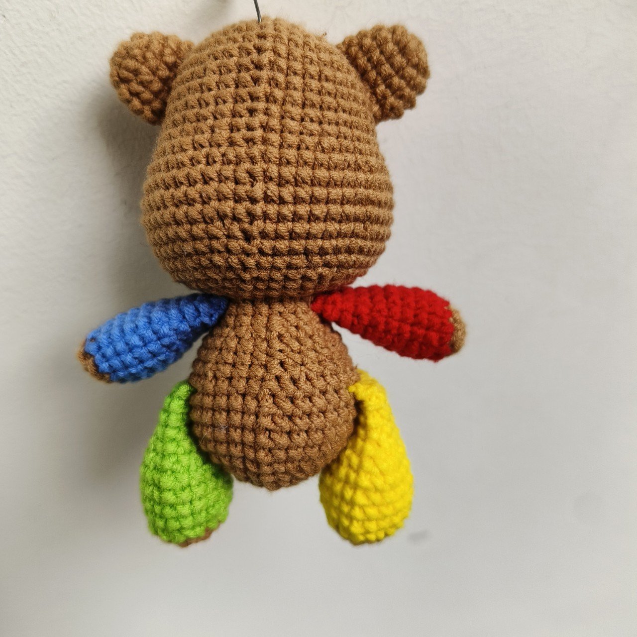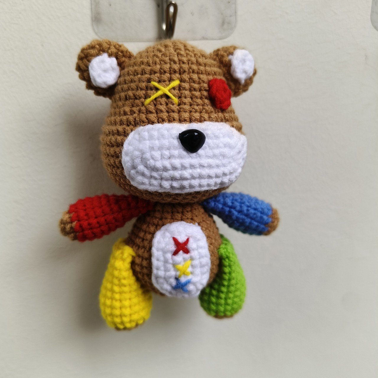 Round Belly Fluffy Paws Hand-Knitted Creamy Coffee Tibbers Bear Keychain; Vivid 3D Teddy Bear Design; Soft Cotton Crochet Hanging Charm; Lovely Cartoon Style; Lightweight & Easy to Carry; Perfect for Keys, Bags & Backpacks; A Sweet Daily Companion for Bear Lovers & Game Fans of All Ages