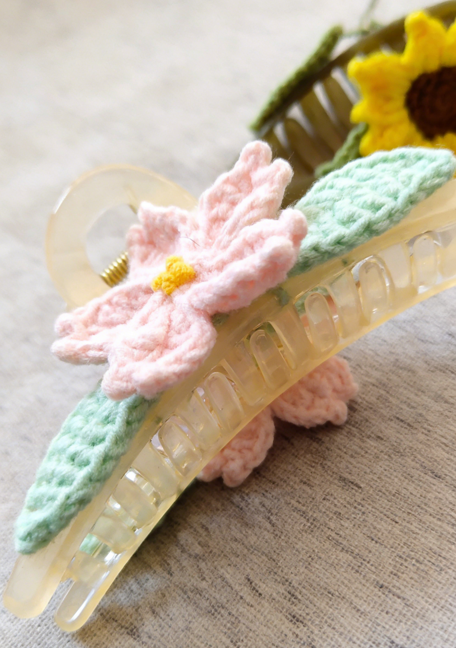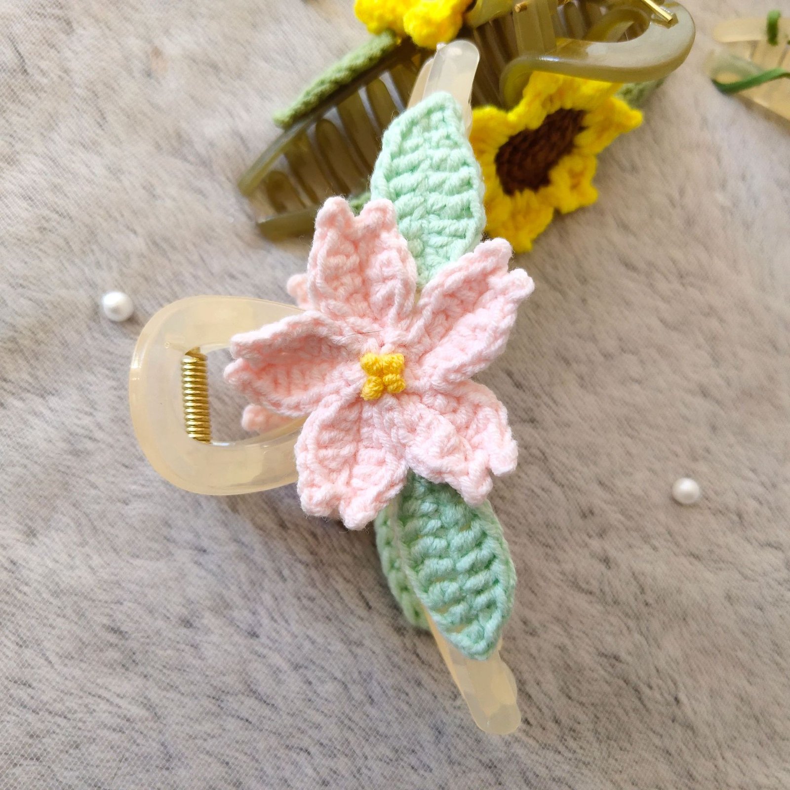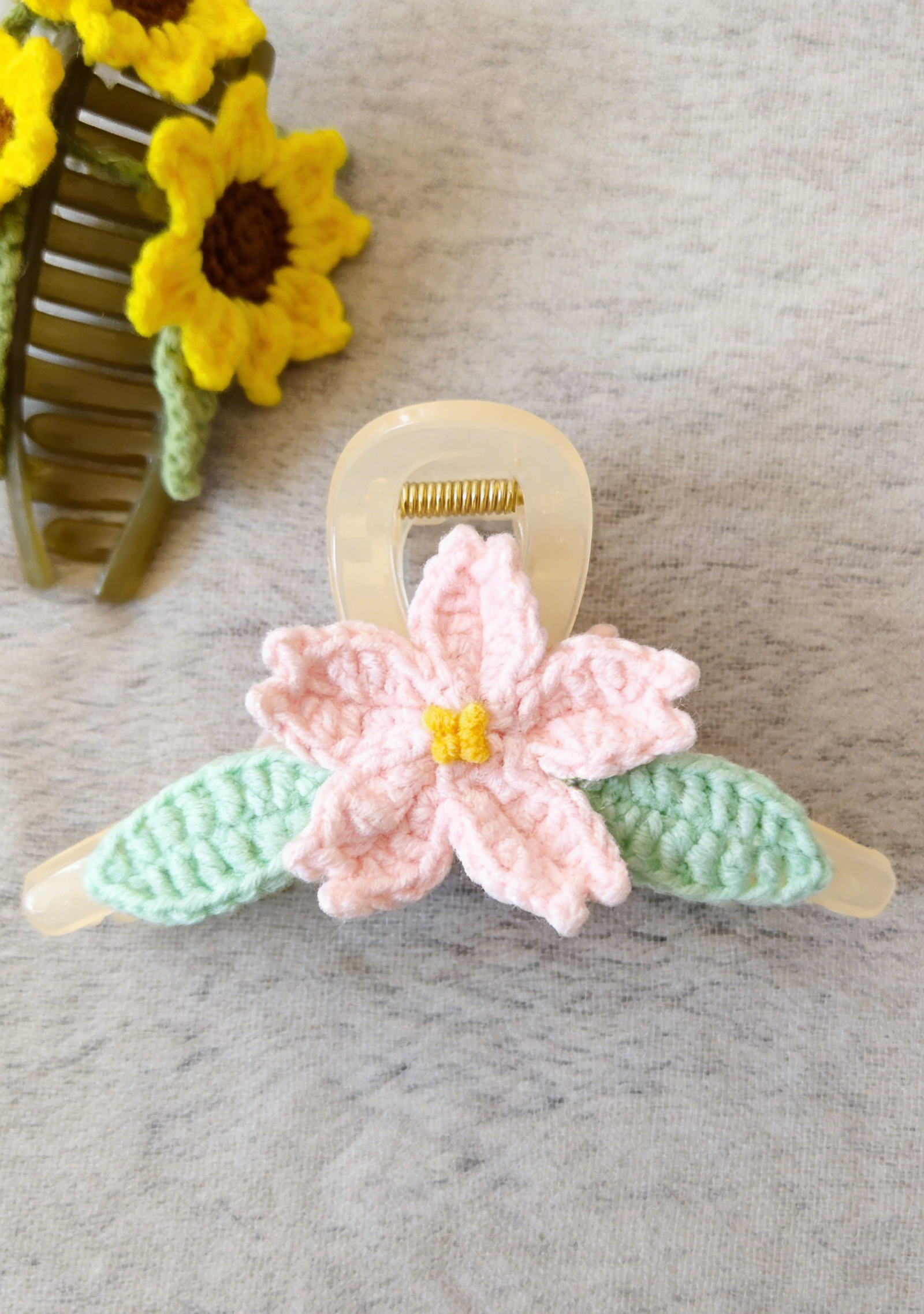 Single Hand-Knitted Sakura Flower Claw Clip; Unique Design; Soft Cotton Crochet Hair Accessory; Cute Floral Hair Clamp for Women & Girls; Daily Wear & Gift Use; Ideal for Hairstyling & Special Occasions; Durable & Gentle on Hair