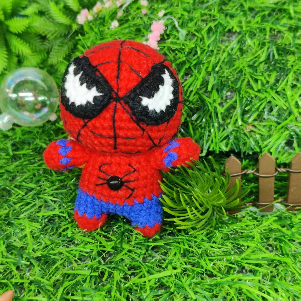 Web Hero Hand-Knitted Keychain; Unique 3D Web-Slinger Design; Soft Cotton Bag Charm; Cute Cartoon Hanging Ornament; Daily Use; Ideal Gift for Hero Fans, Him & Kids; Lightweight & Durable; Perfect for Keys, Bags & Backpacks